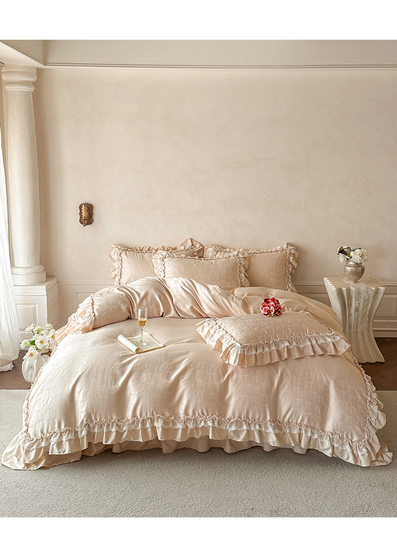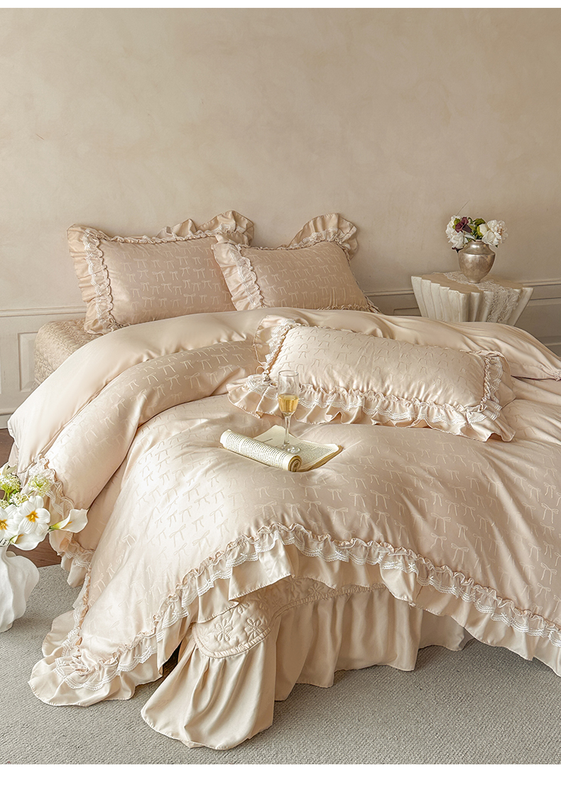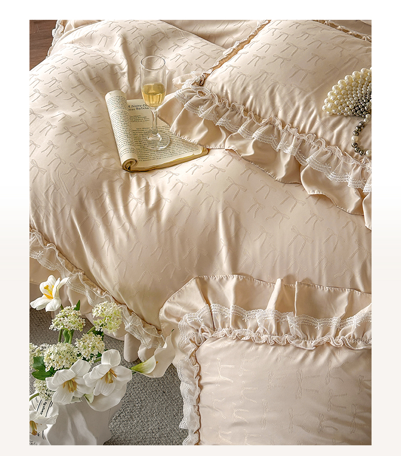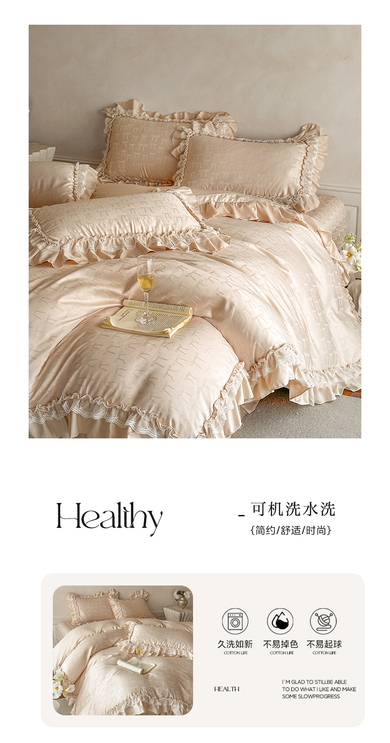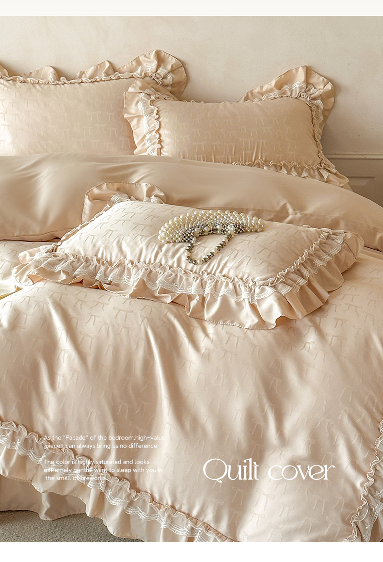(总)迪梦姿家纺 2026新款春意真丝提花蕾丝款夏被四件套,豆沙,粉玉,抹茶绿,奶白,天空兰,香槟