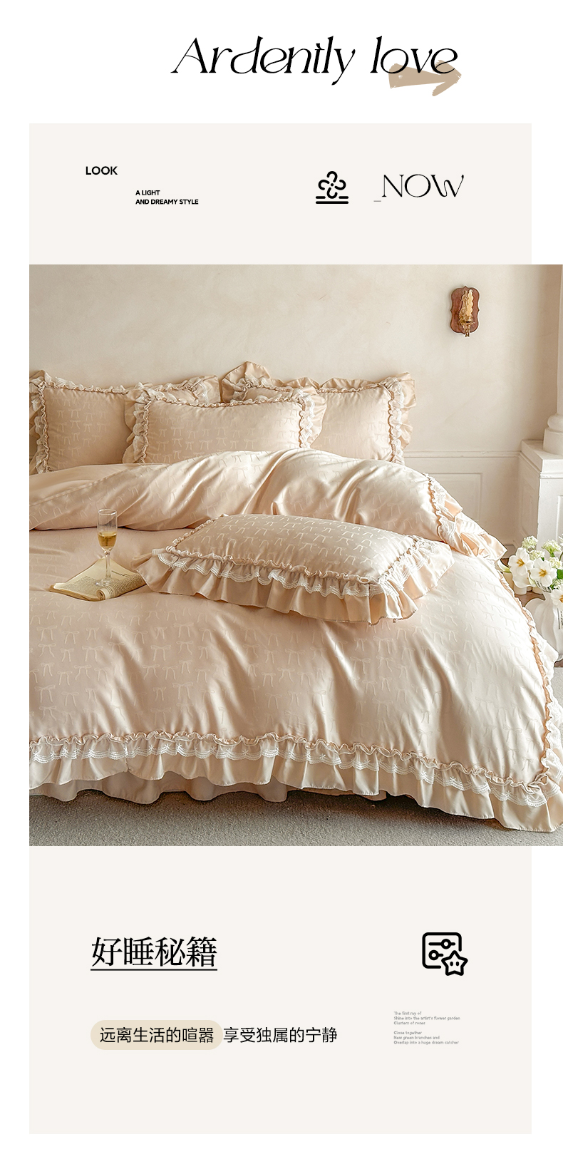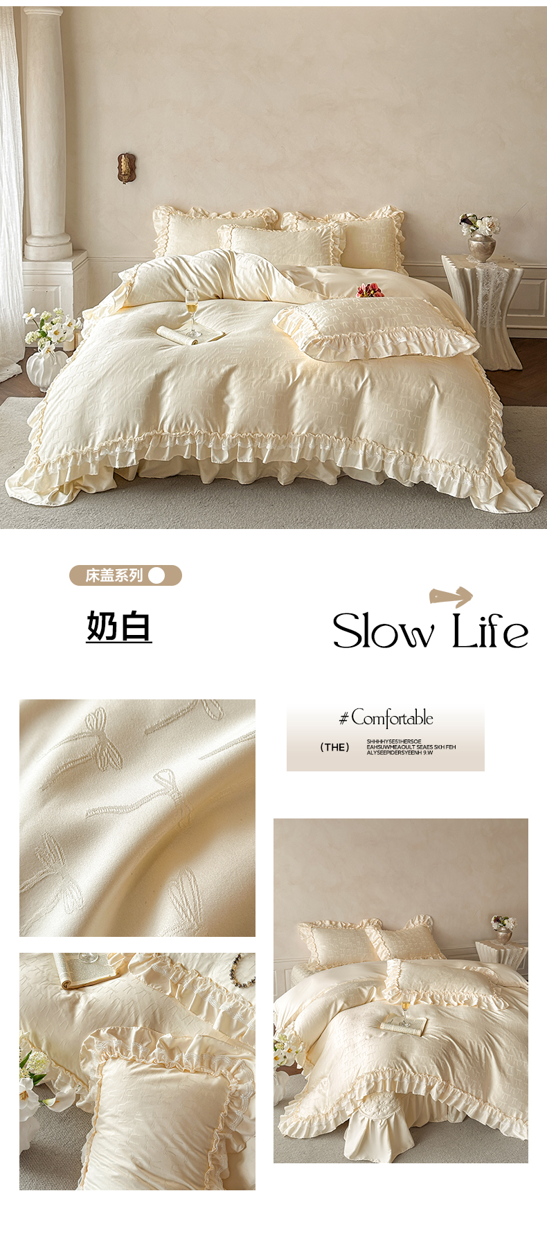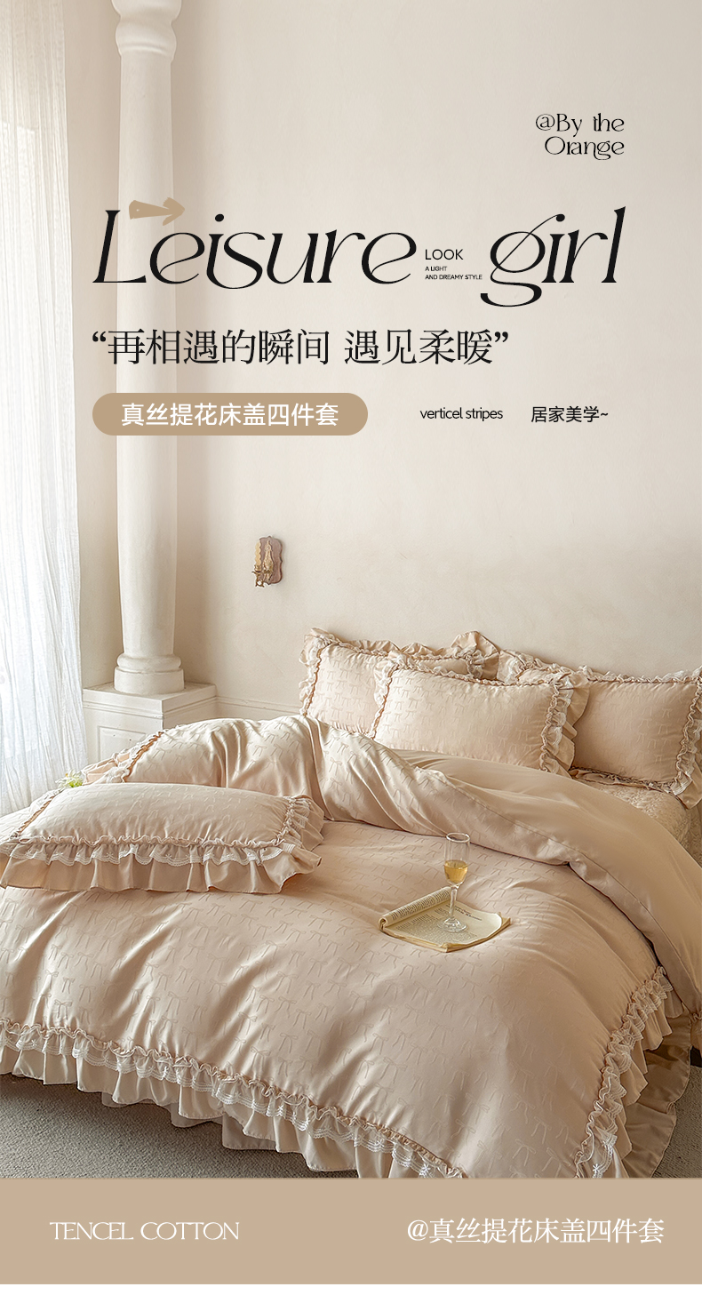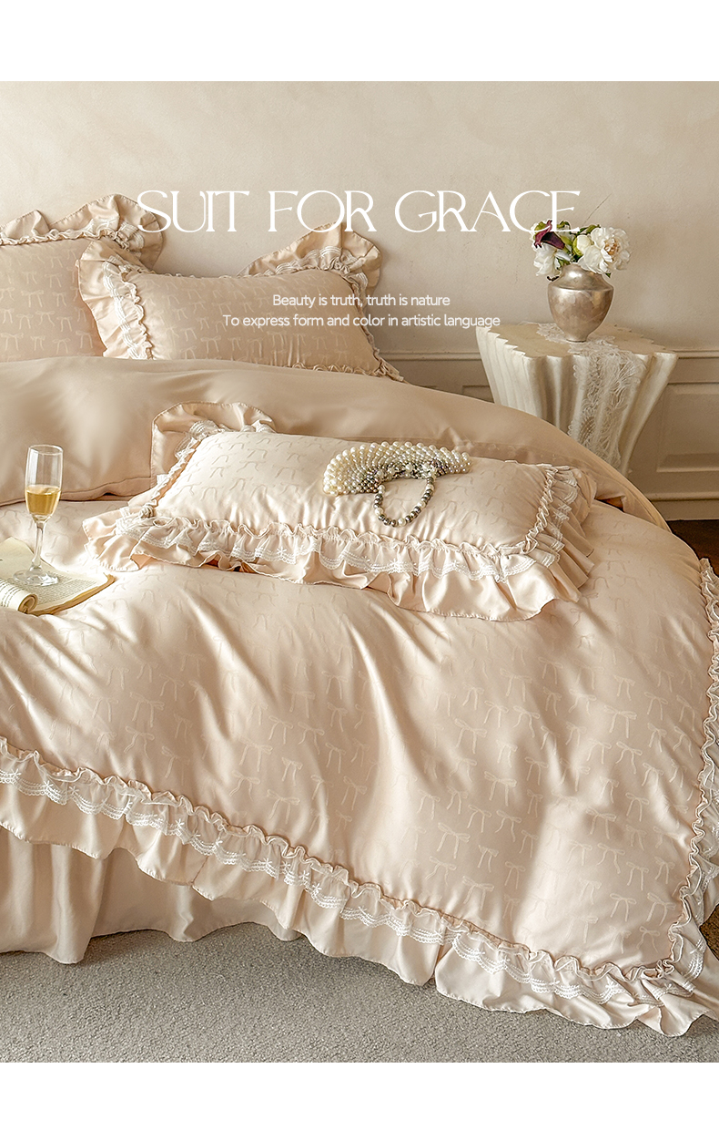 (总)迪梦姿家纺 2026新款春意真丝提花蕾丝款夏被四件套,豆沙,粉玉,抹茶绿,奶白,天空兰,香槟