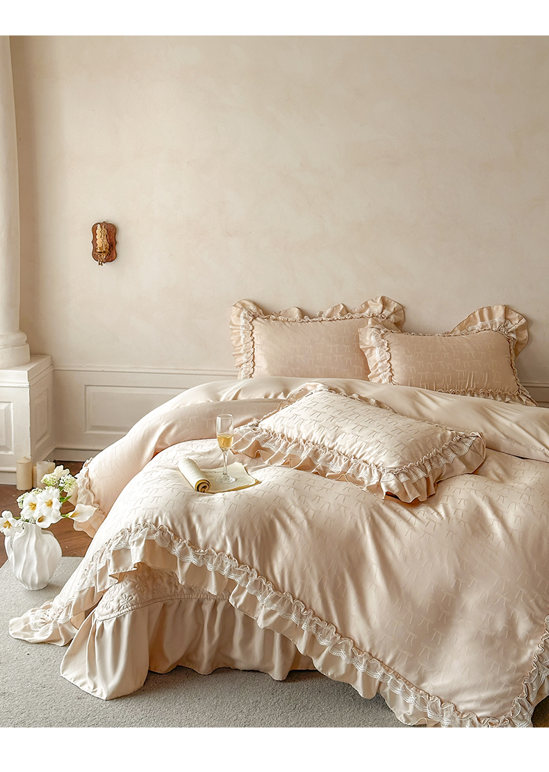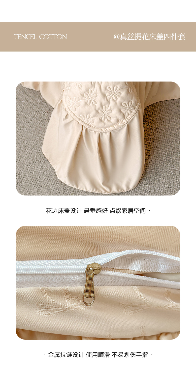 迪梦姿家纺 2026新款春意真丝提花床盖四件套 香槟