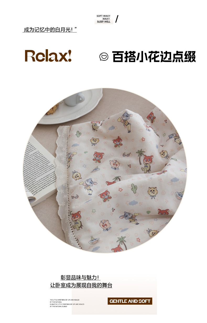 万盛家纺 2026新款全棉双层纱花边印花夏被空调被夏凉被 动物城