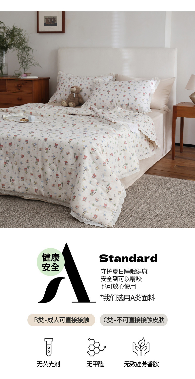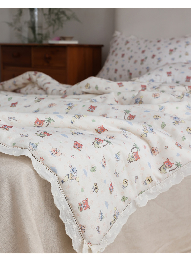 商品名称:万盛家纺 2026新款全棉双层纱花边印花夏被空调被夏凉被 动物城