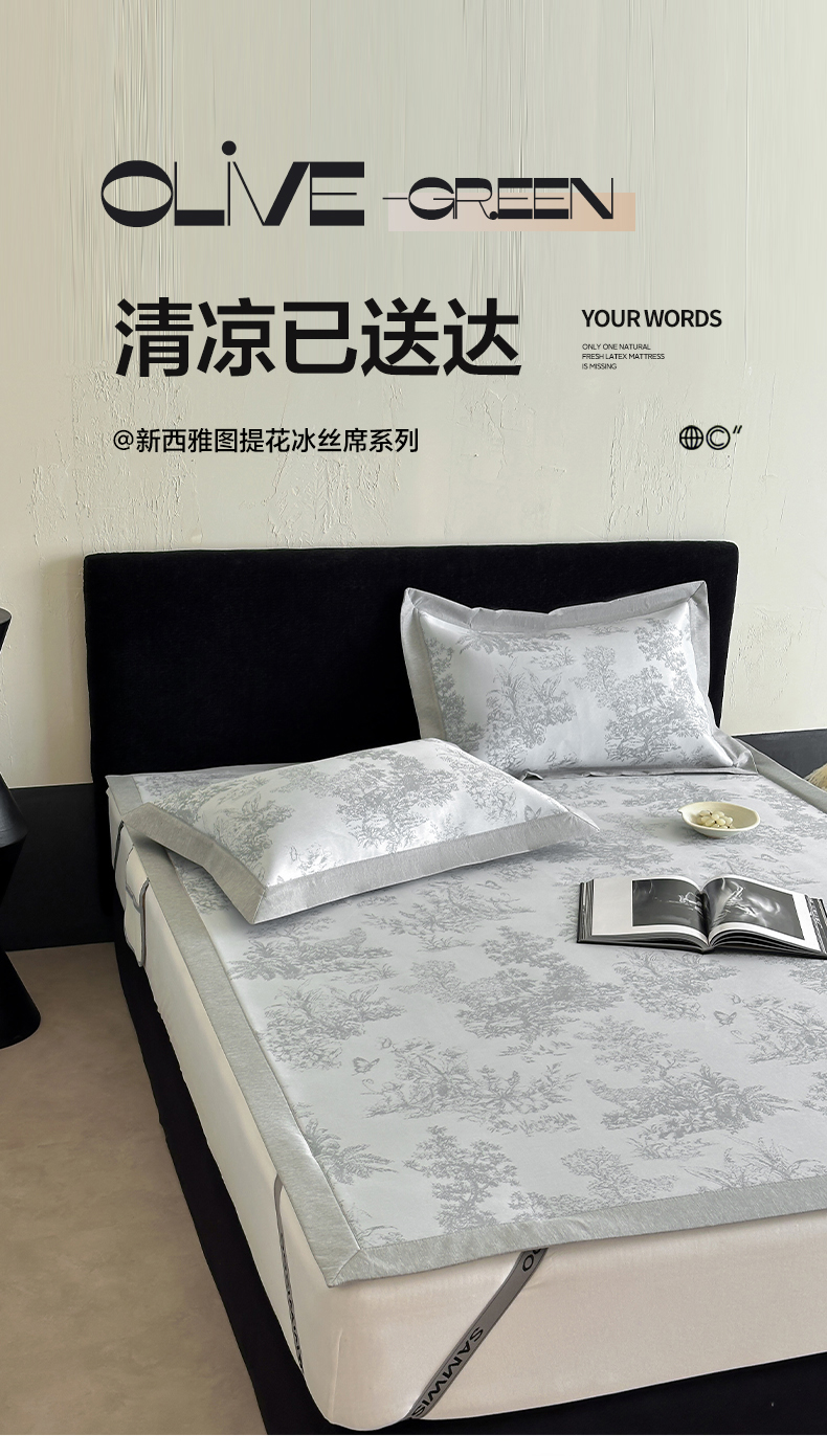 (总)三味舒屋 2026新款A类抗菌防螨凉感提花冰丝凉席,西雅图灰,西雅图咖,西雅图绿床席