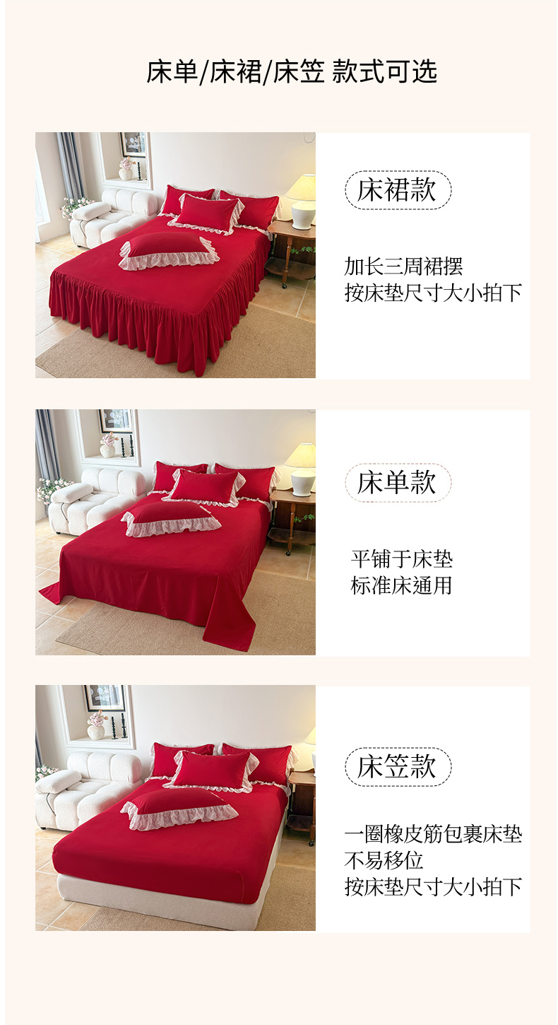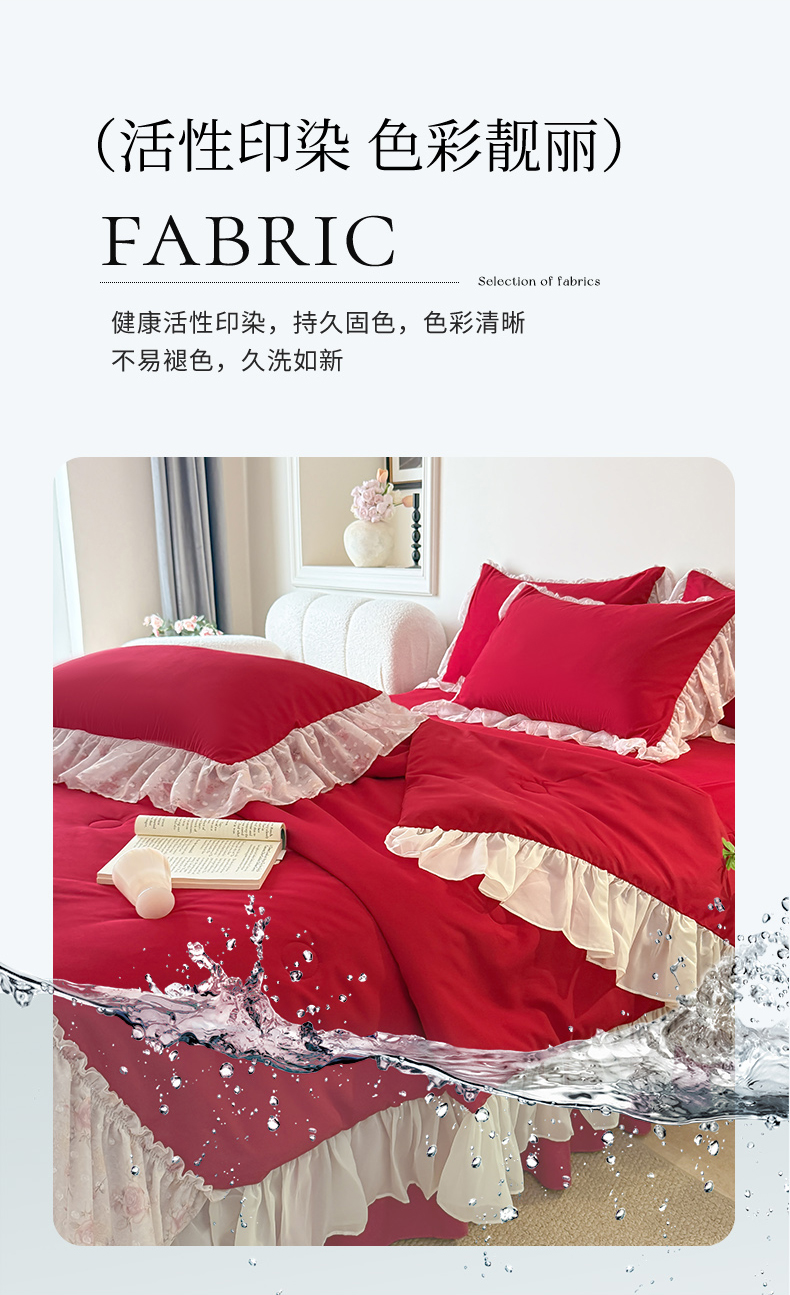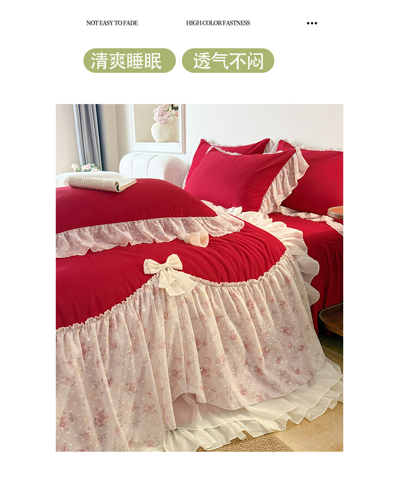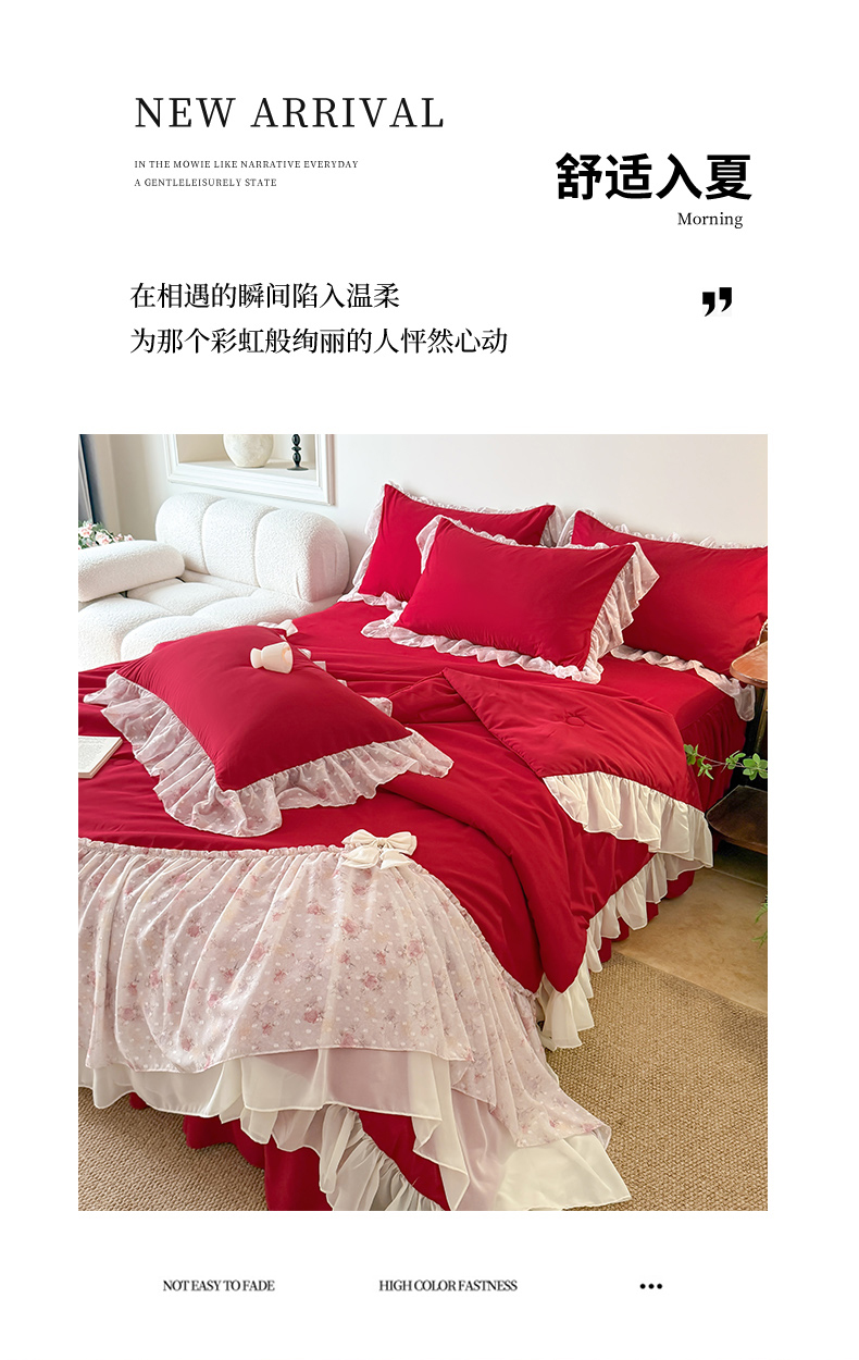 • 91家纺网 家纺一手货源 找家纺 富盛家纺 2026新款雪纺蕾丝刺绣法式床裙韩版夏凉被空调被夏被四件套 夏被四件套—浪漫主义(大红)