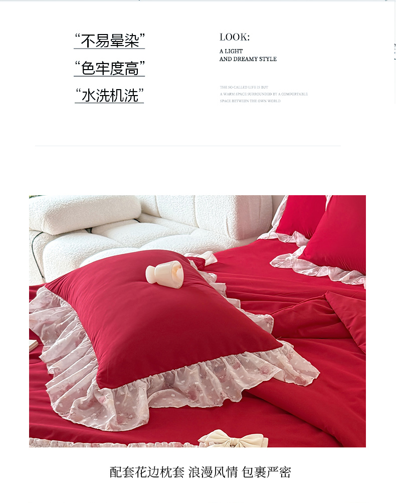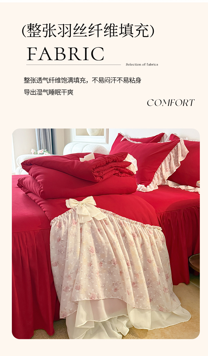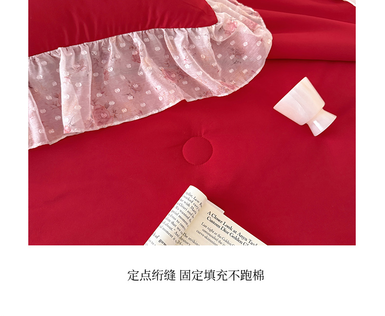 当前位置: 91家纺网 > 商品网购 > 被子 > 普通夏被 > 富盛家纺 2026新款雪纺蕾丝刺绣法式床裙韩版夏凉被空调被夏被四件套 夏被四件套—浪漫主义(大红)