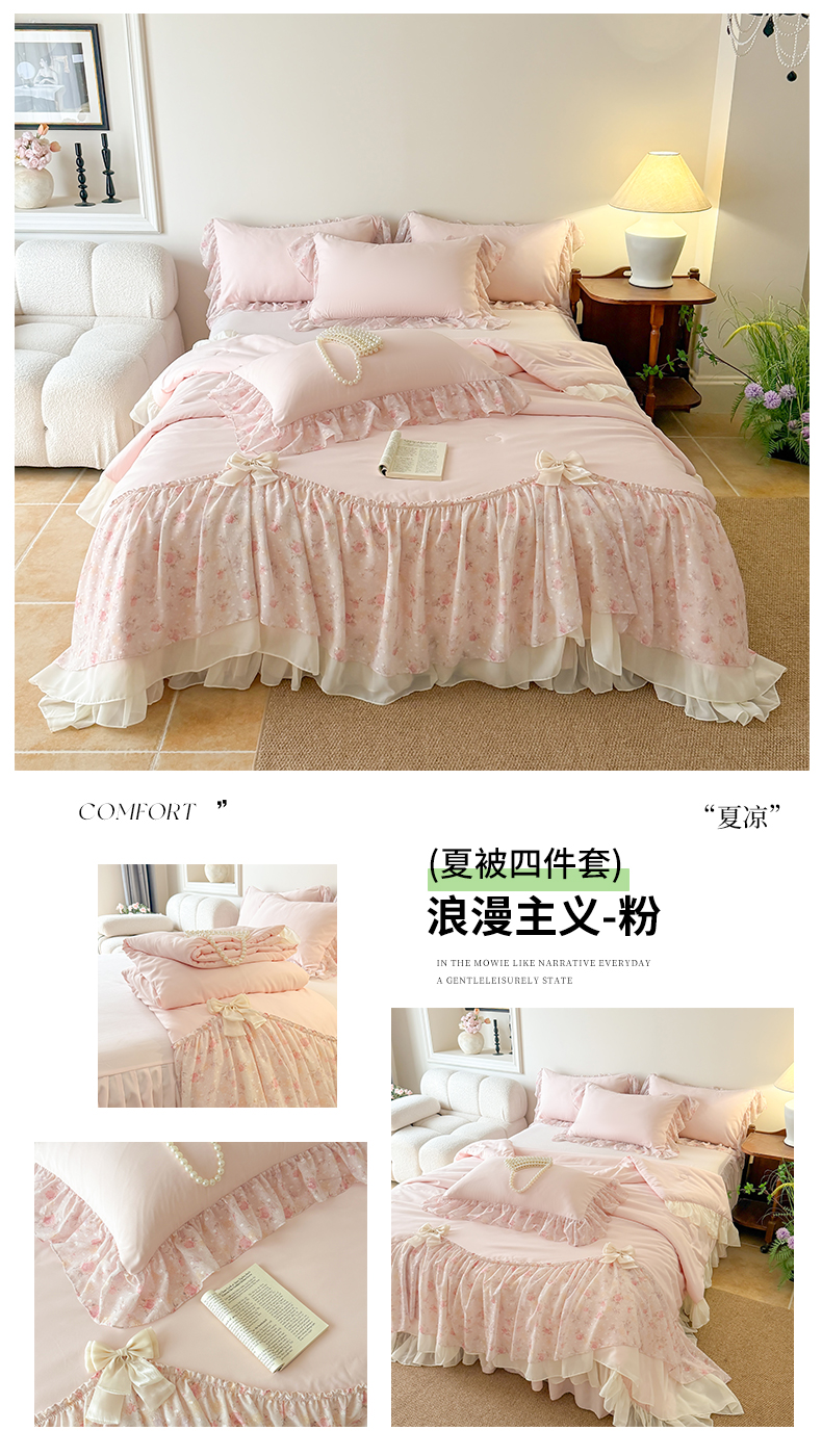 (总)富盛家纺 2026新款雪纺蕾丝刺绣法式床裙韩版夏凉被空调被夏被四件套,夏被四件套—浪漫主义(粉),夏被四件套—浪漫主义(米白),夏被四件套—浪漫主义(绿),夏被四件套—浪漫主义(紫),夏被四件套—浪漫主义(大红),夏被四件套—浪漫主义(黄),夏被四件套—浪漫主义(蓝),夏被四件套—浪漫主义(豆沙),组合图仅供展示不可下单