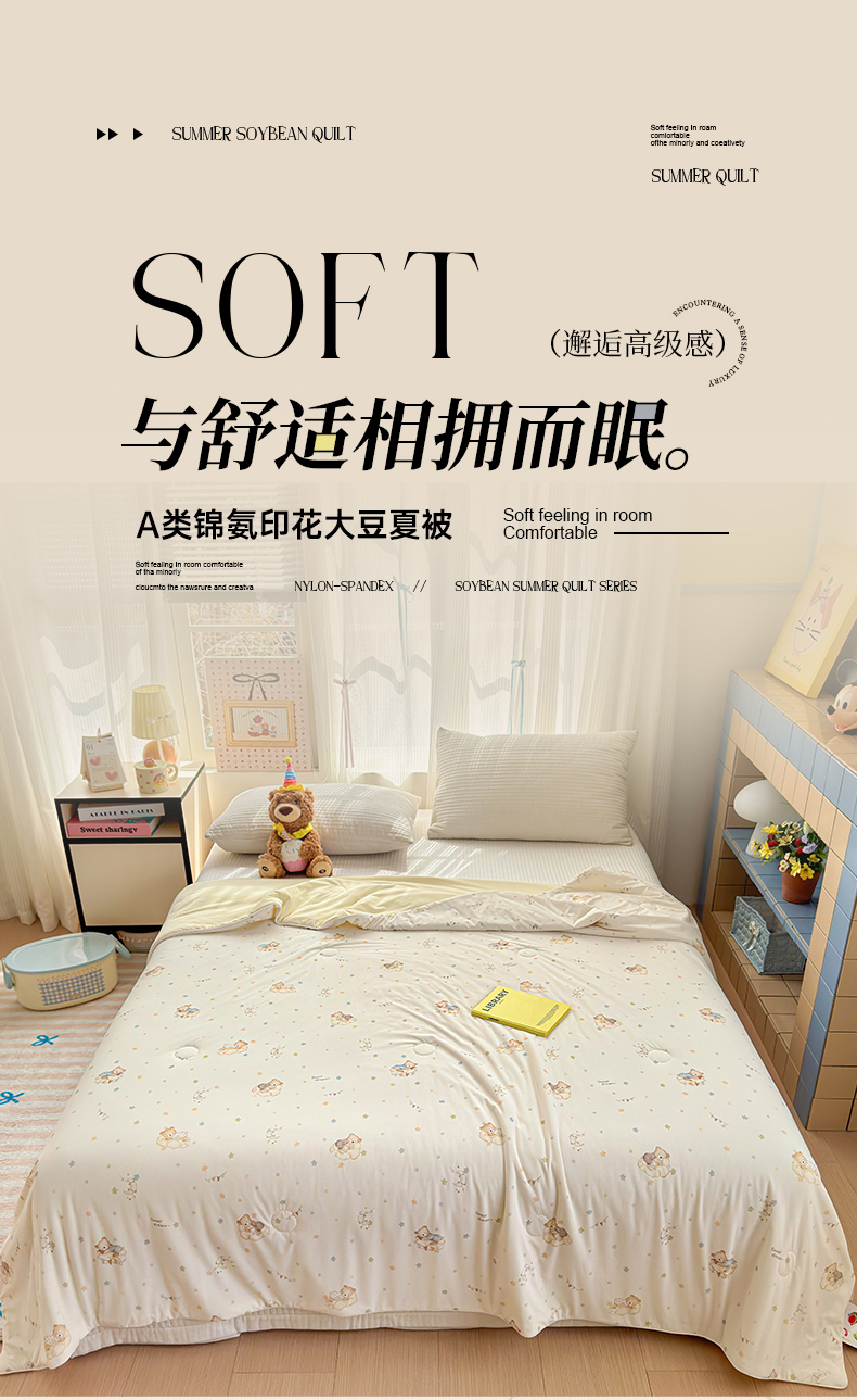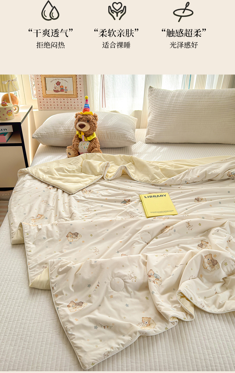 商品名称:亿梵家居 2026新款锦氨印花凉感夏被 晚安小熊