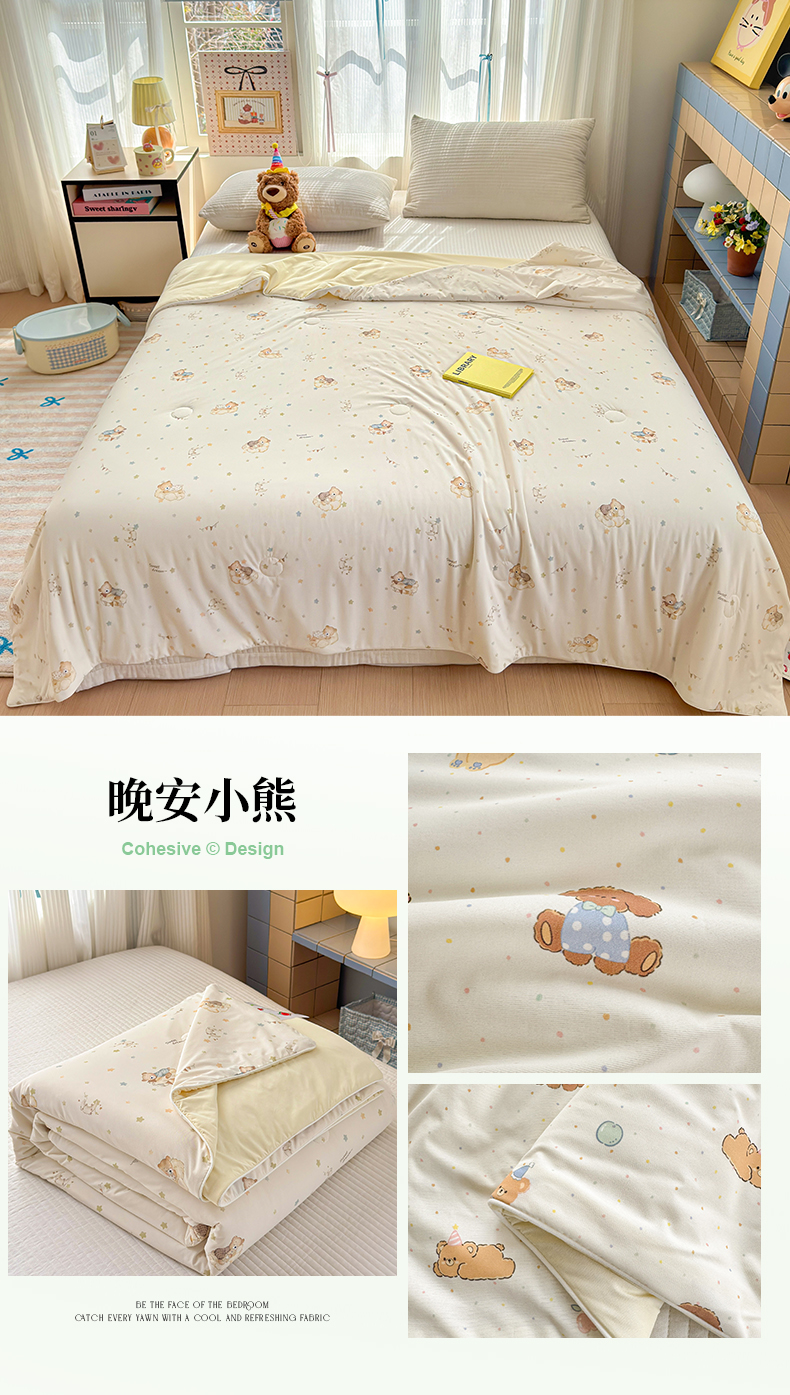亿梵家居 2026新款锦氨印花凉感夏被 晚安小熊