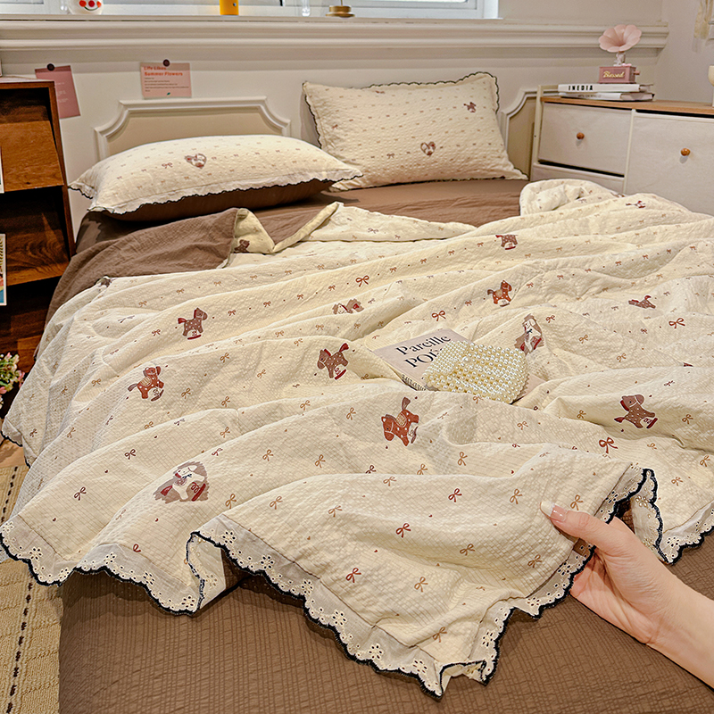 (总)一比一家纺 2026新款彩色花边木棉皱皱纱夏被四件套,阿吉豆,初心粉,初心蓝,扶摇,赫本,花间女孩,花漫漫,阑珊,罗卡,奶芙喵,甜心格格,午后花园,小马驹,邂逅,野餐兔,樱花季,悠然,紫烟