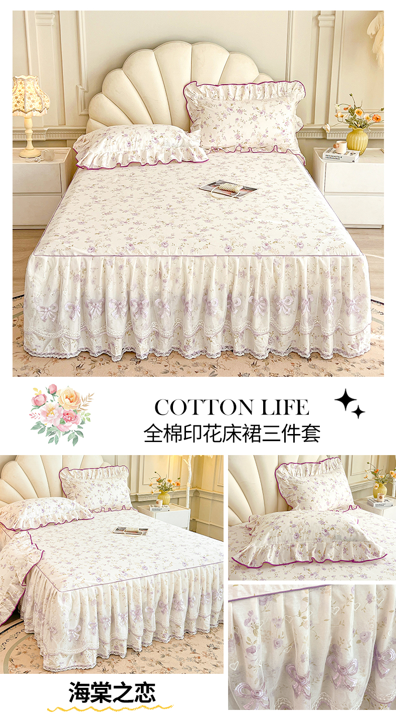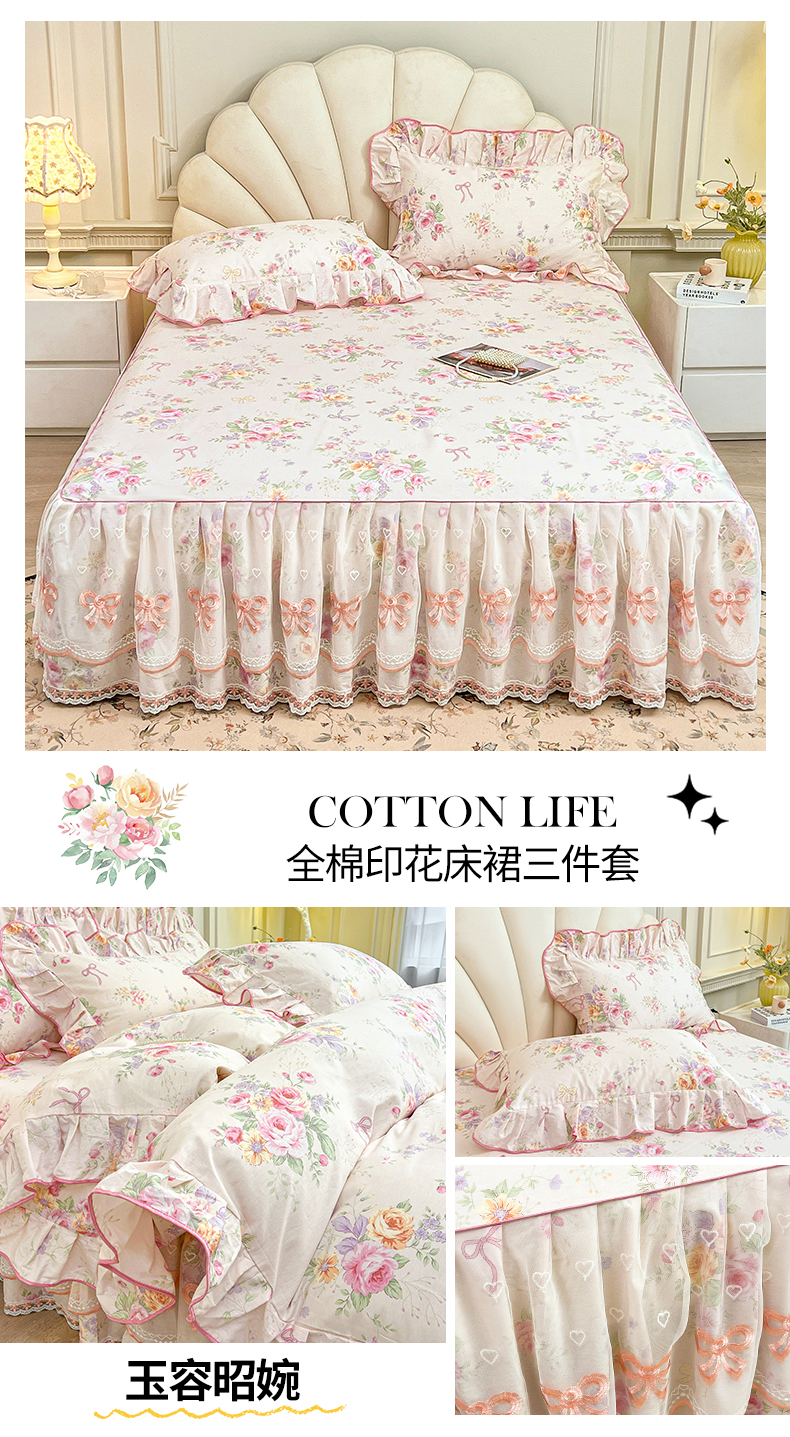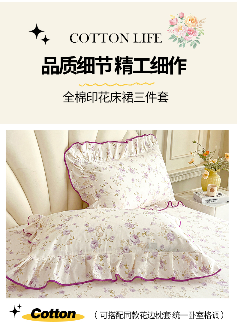 宜凡家纺 2026新款全棉公主风单层床裙三件套 海棠之恋