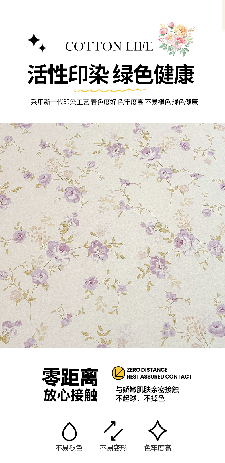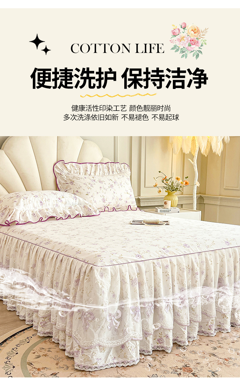 • 91家纺网 家纺一手货源 找家纺 宜凡家纺 2026新款全棉公主风单层床裙三件套 海棠之恋
