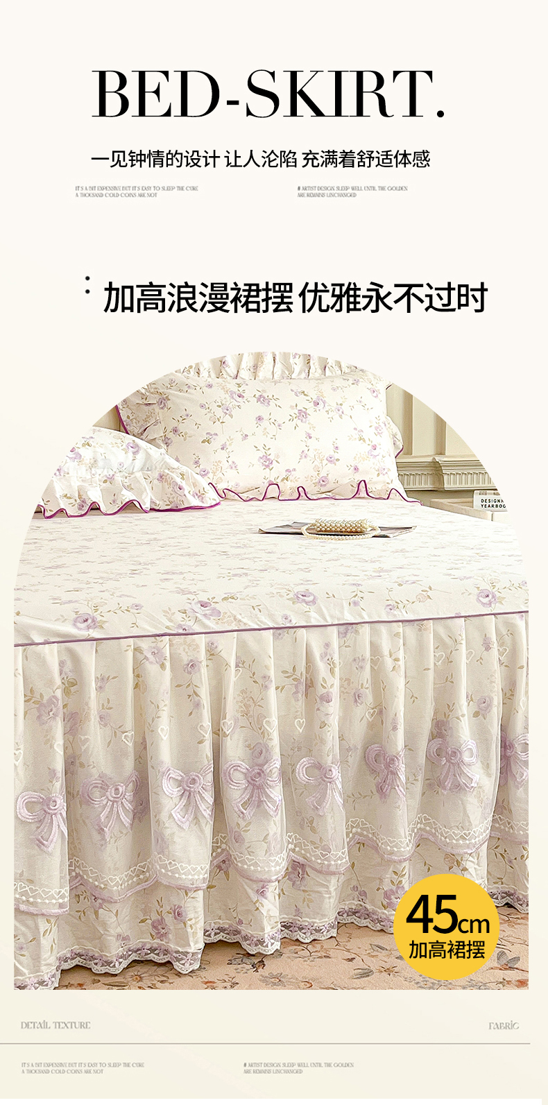 当前位置: 91家纺网 > 商品网购 > 床上用品 > 床裙 > 宜凡家纺 2026新款全棉公主风单层床裙三件套 海棠之恋