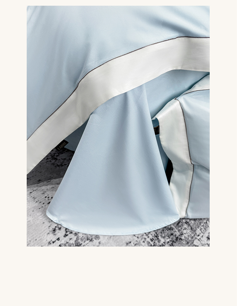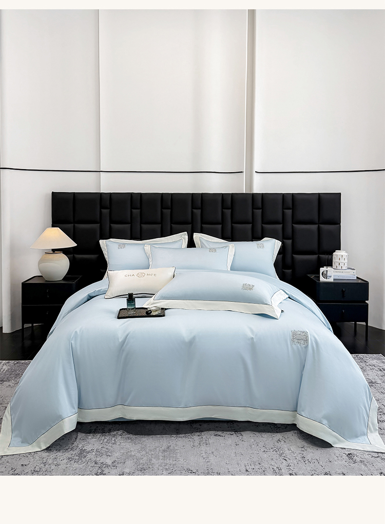 商品名称:莱势 2026新品A类100支全棉纯棉50x50s埃及贡缎长绒棉刺绣绣花四件套高端礼盒-仙本娜 仙本娜 天空蓝
