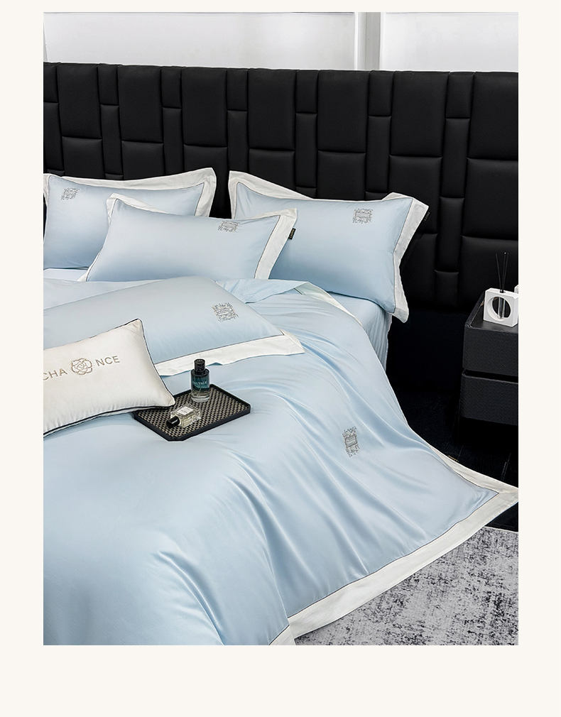 莱势 2026新品A类100支全棉纯棉50x50s埃及贡缎长绒棉刺绣绣花四件套高端礼盒-仙本娜 仙本娜 天空蓝