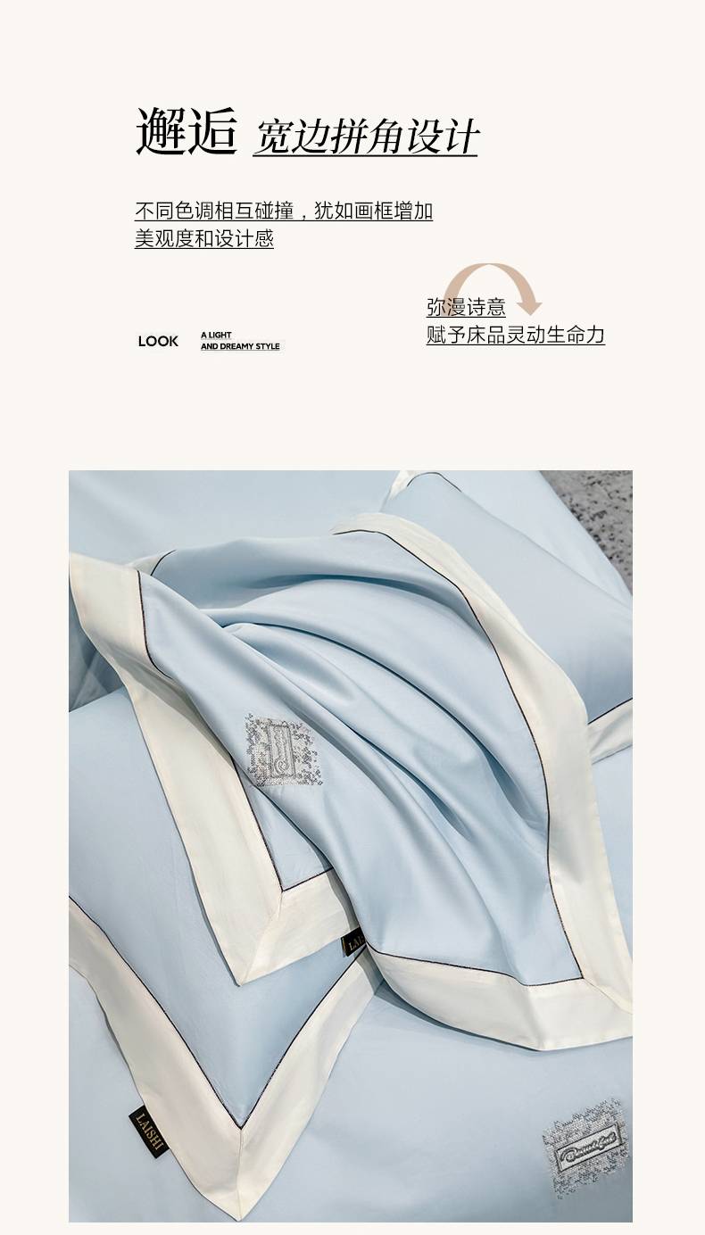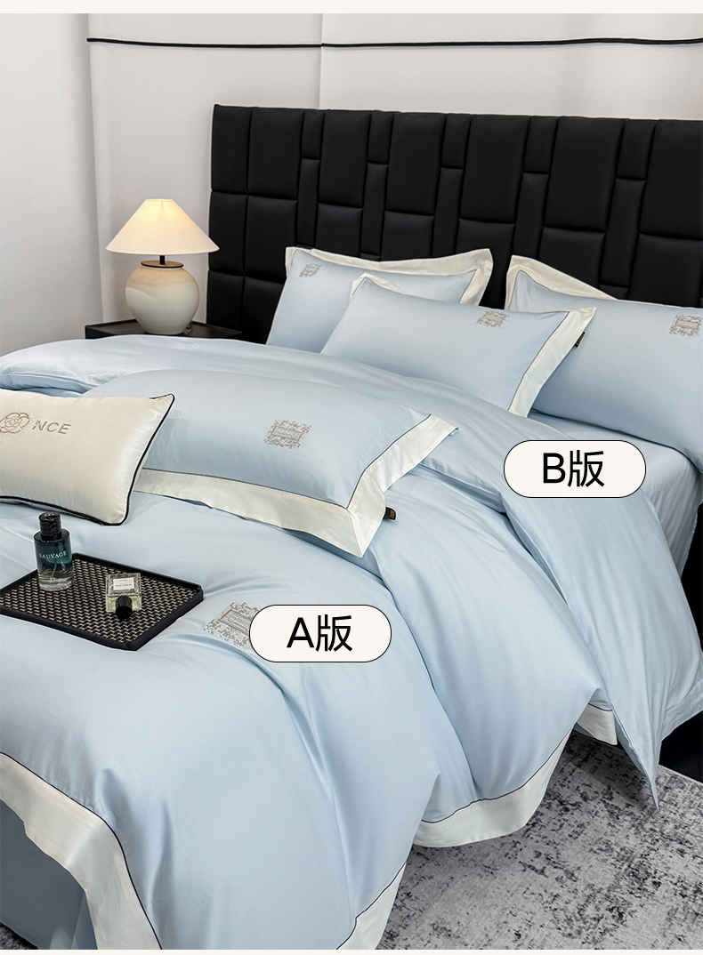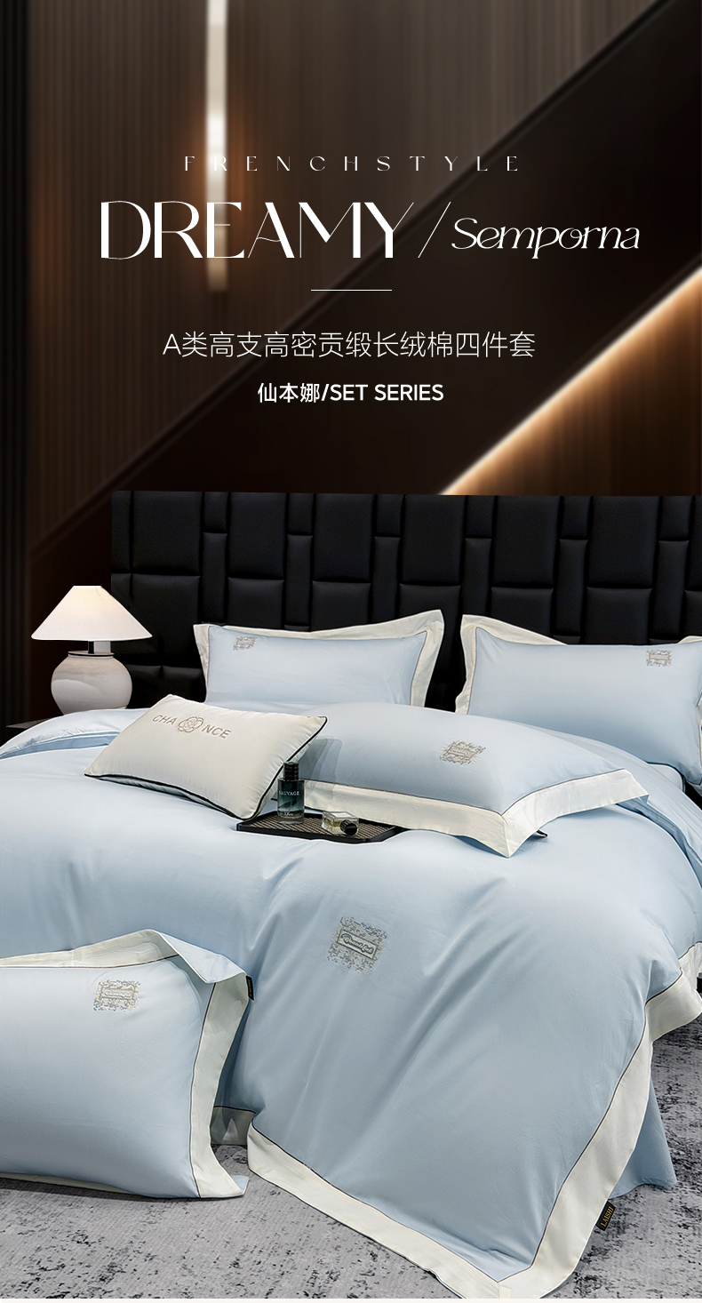 (总)莱势 2026新款100支全棉纯棉50x50s埃及长绒棉法式高精密金丝提花厚织四件套,奢境-天空蓝,奢境-轻奢粉,奢境-香槟金