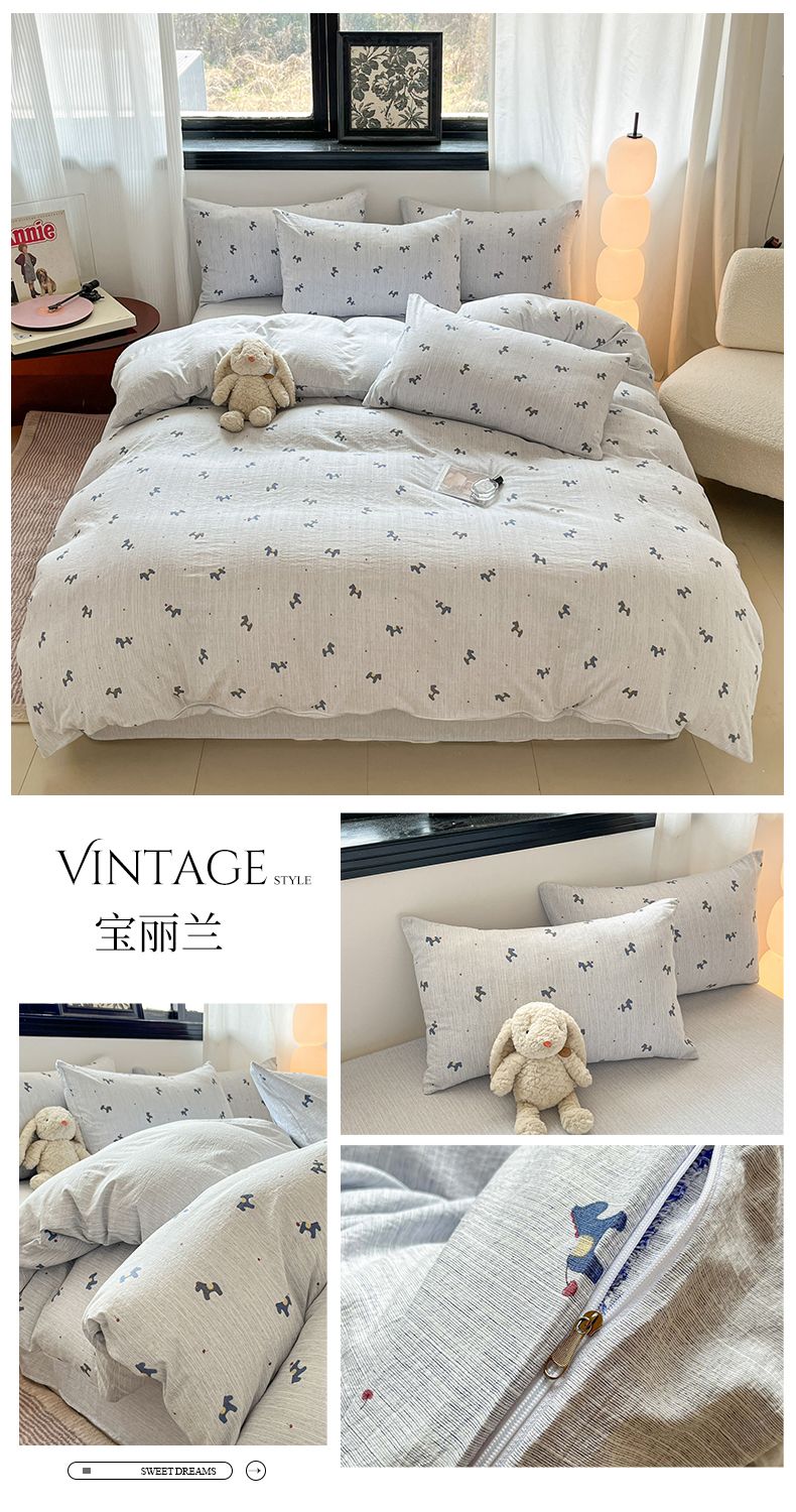 当前位置: 91家纺网 > 商品网购 > 床品套件 > 四件套 > 其它四件套 > 蓝极人 2026新款色织水洗麻印花四件套 兔兔