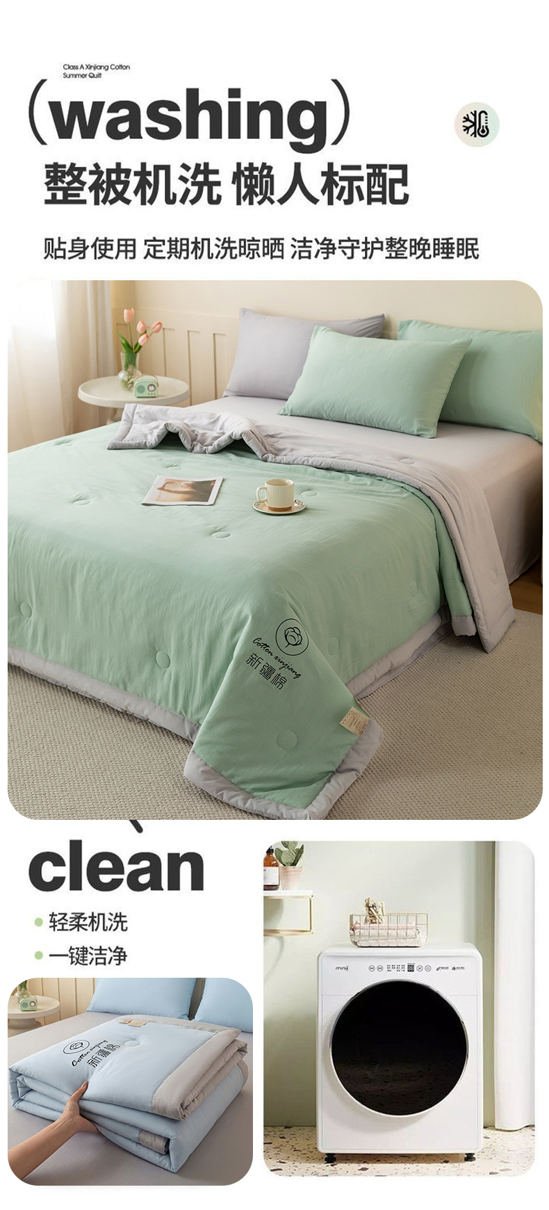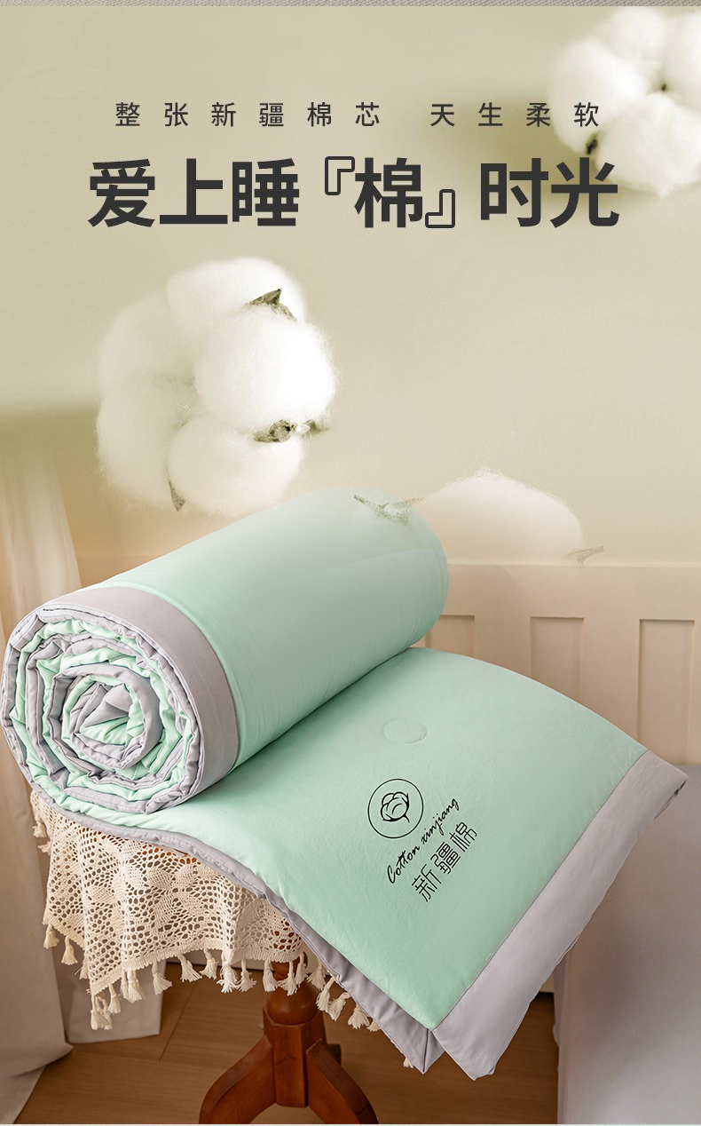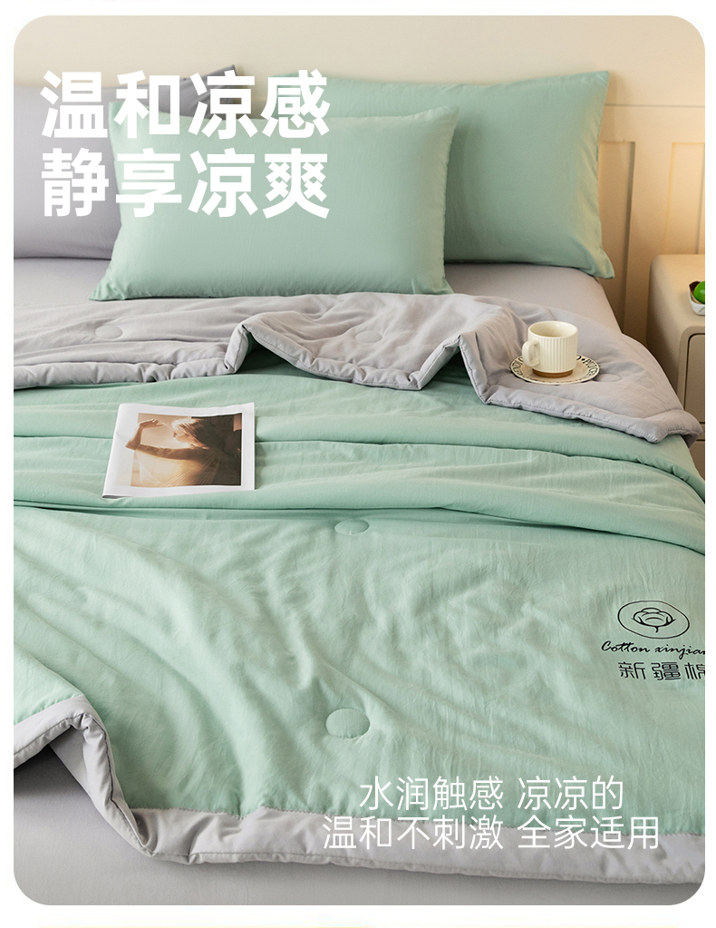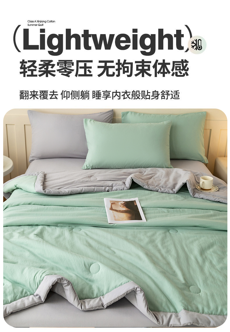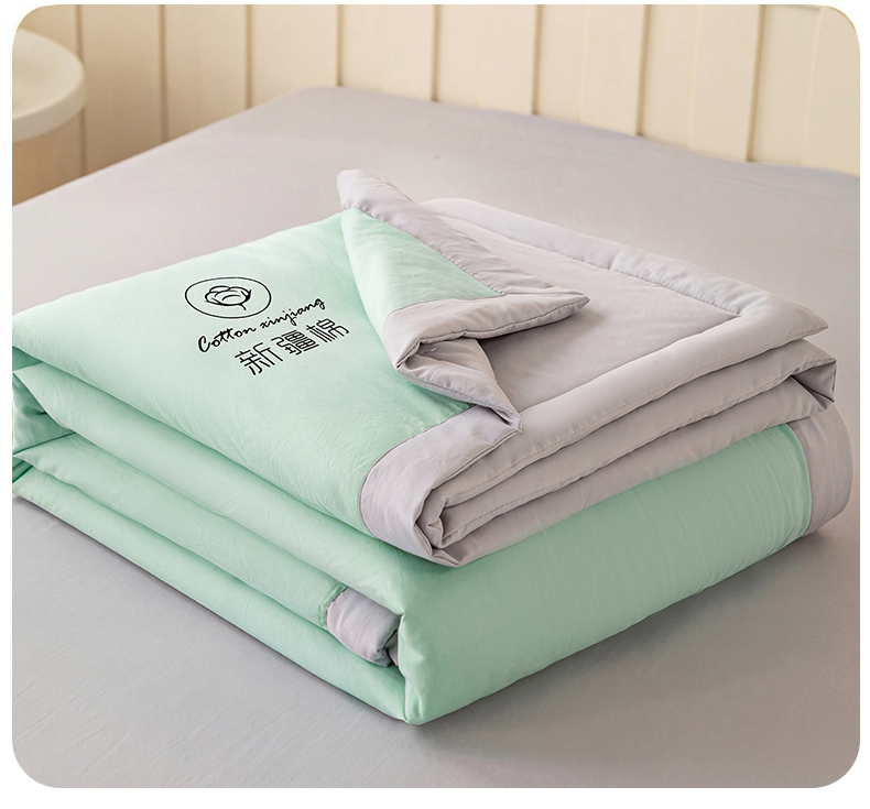 商品名称:几禾 2026春夏新款纯色水洗棉双拼夏被新疆棉花被夏凉被空调被被子被芯 双拼-绿灰