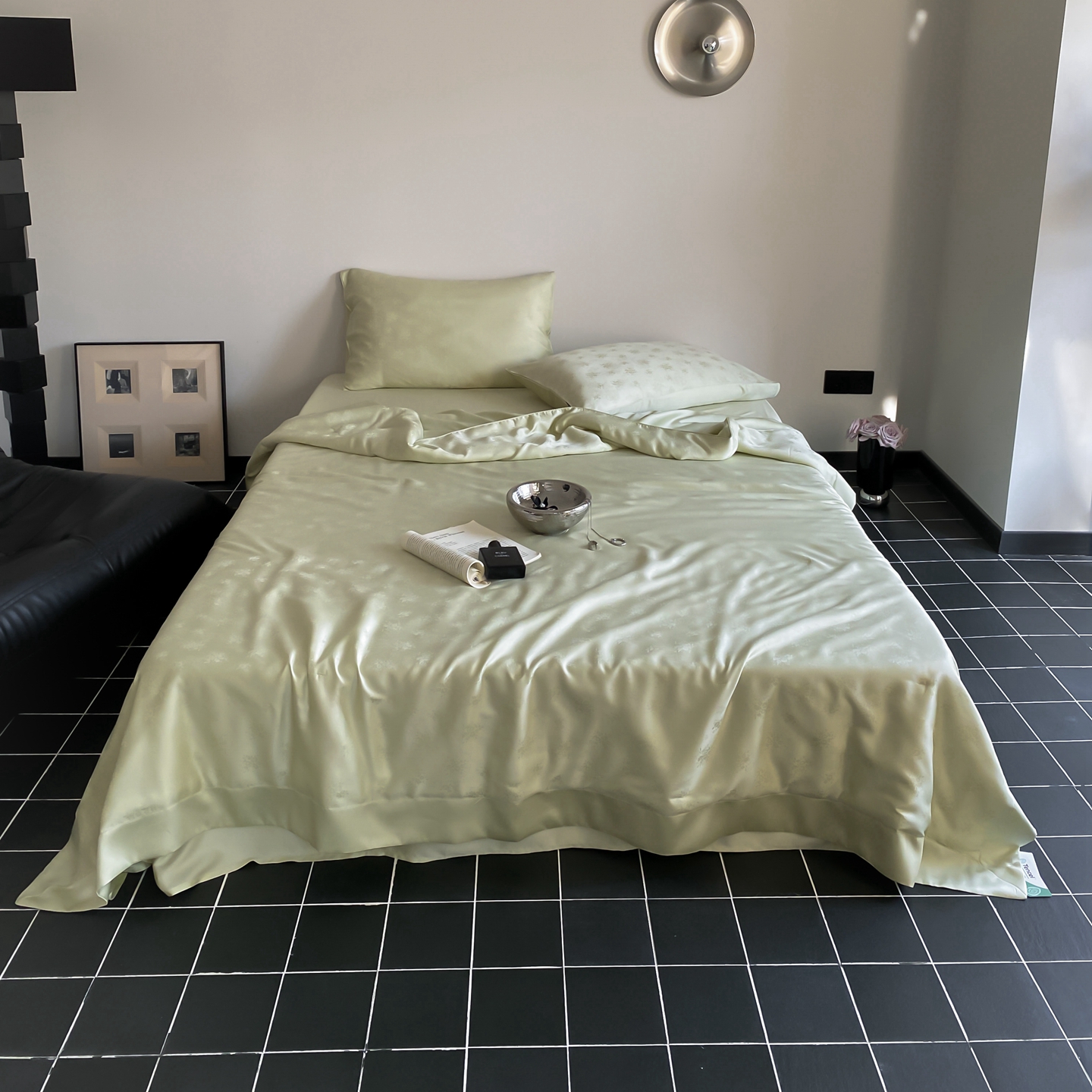 玉宇阁家居 2026新款60s兰精天丝提花夏被夏凉被空调被四件套-半岛茶 半岛茶-松栗奶油