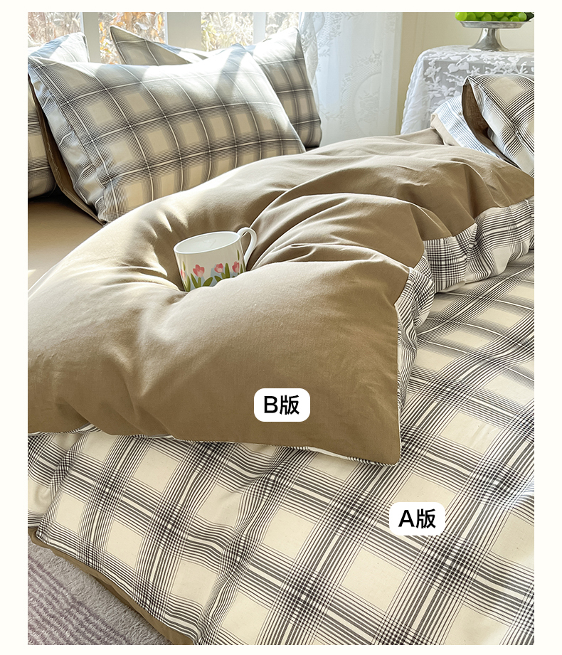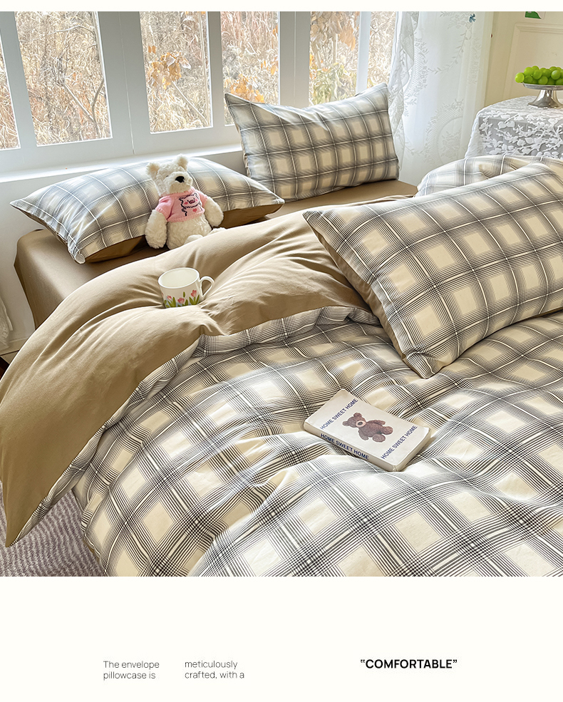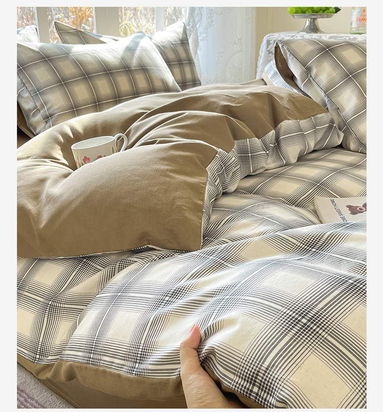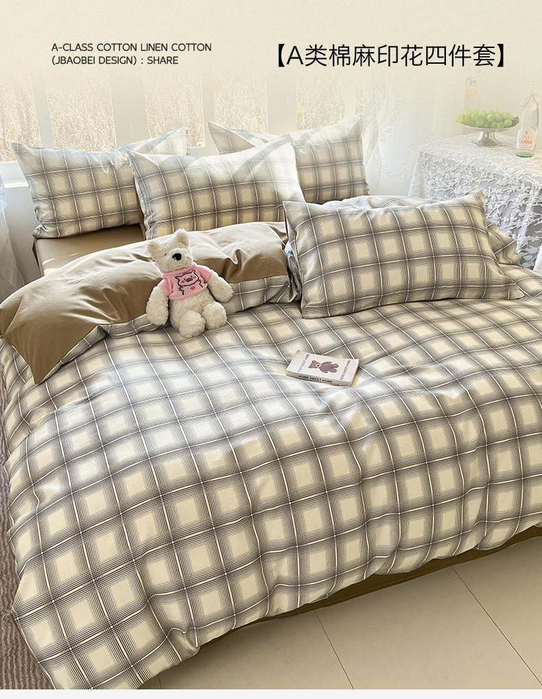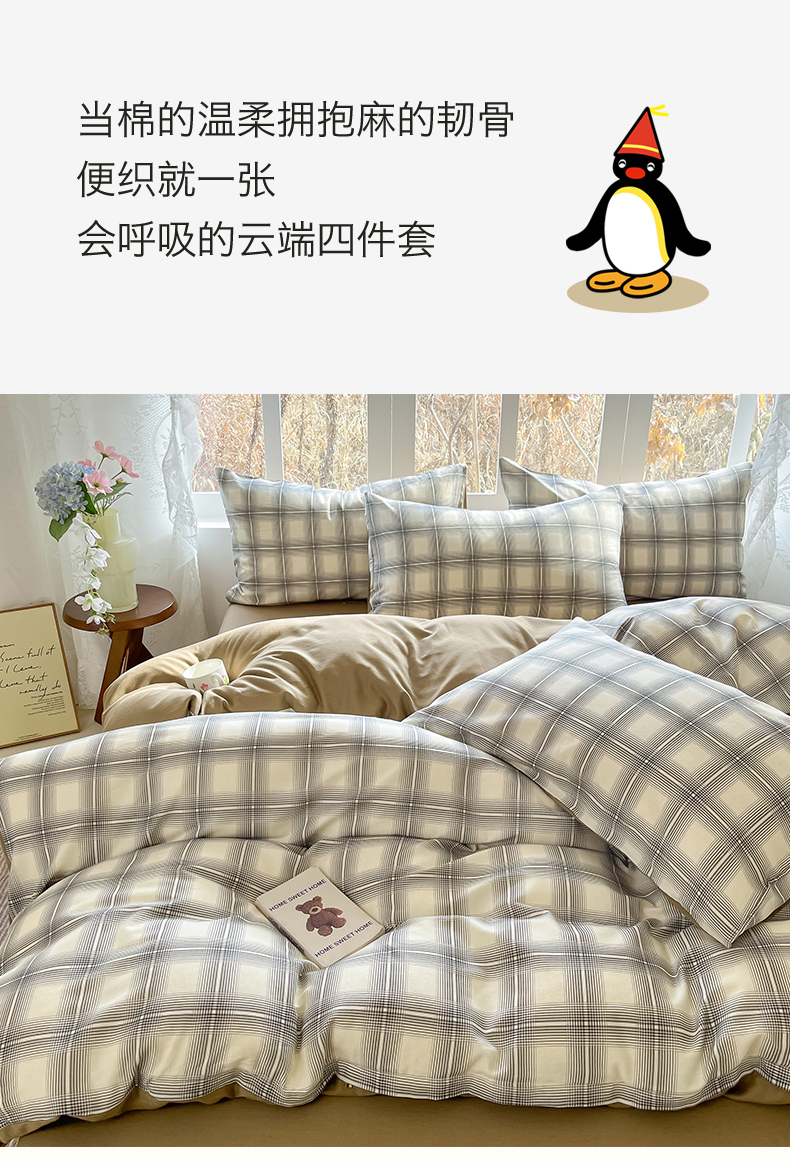 当前位置: 91家纺网 > 商品网购 > 床品套件 > 四件套 > 全棉普通四件套 > 名兮家居 2026新款A类全棉棉麻四件套 暖棕格