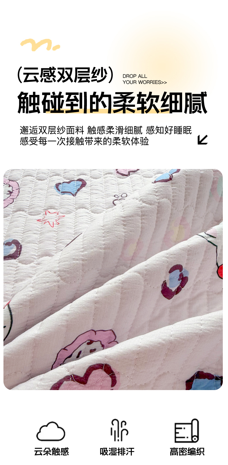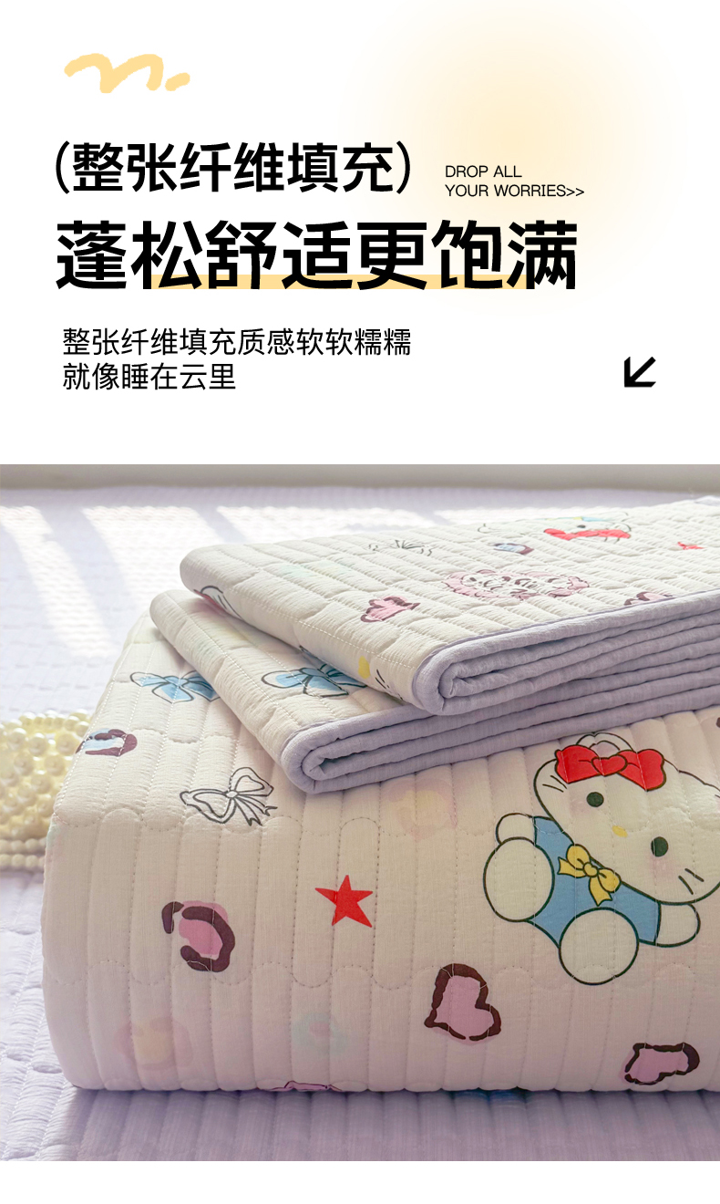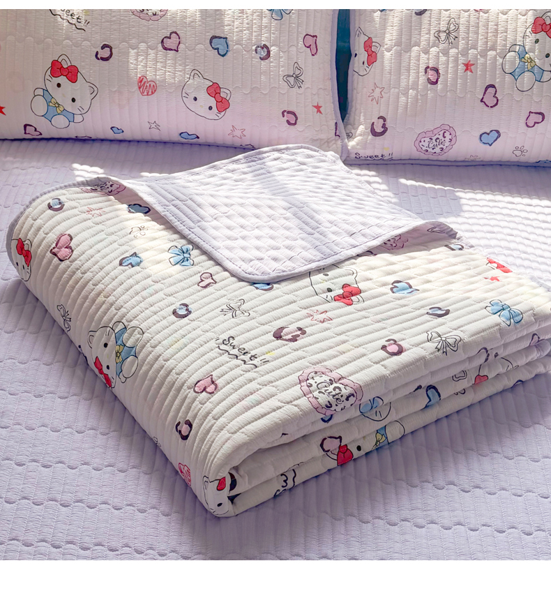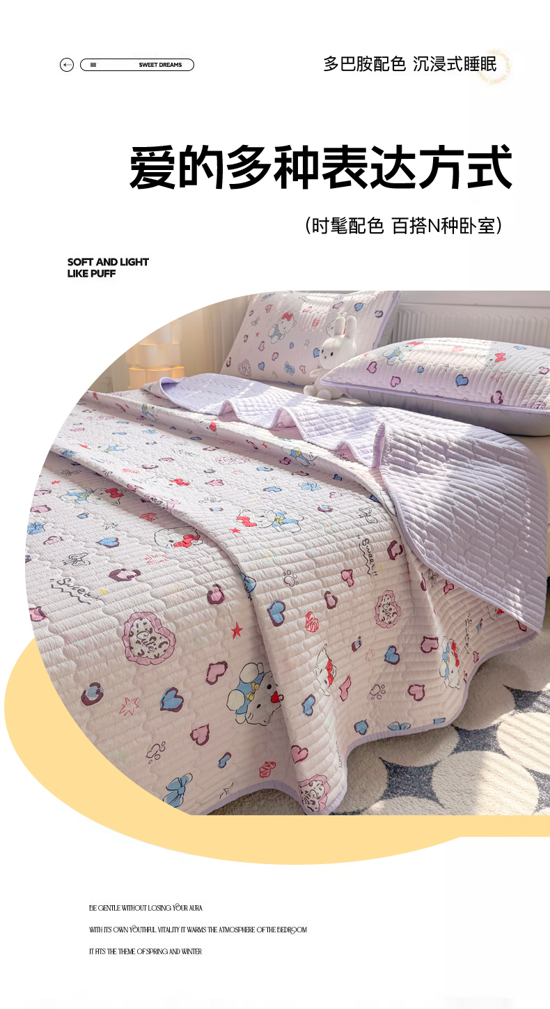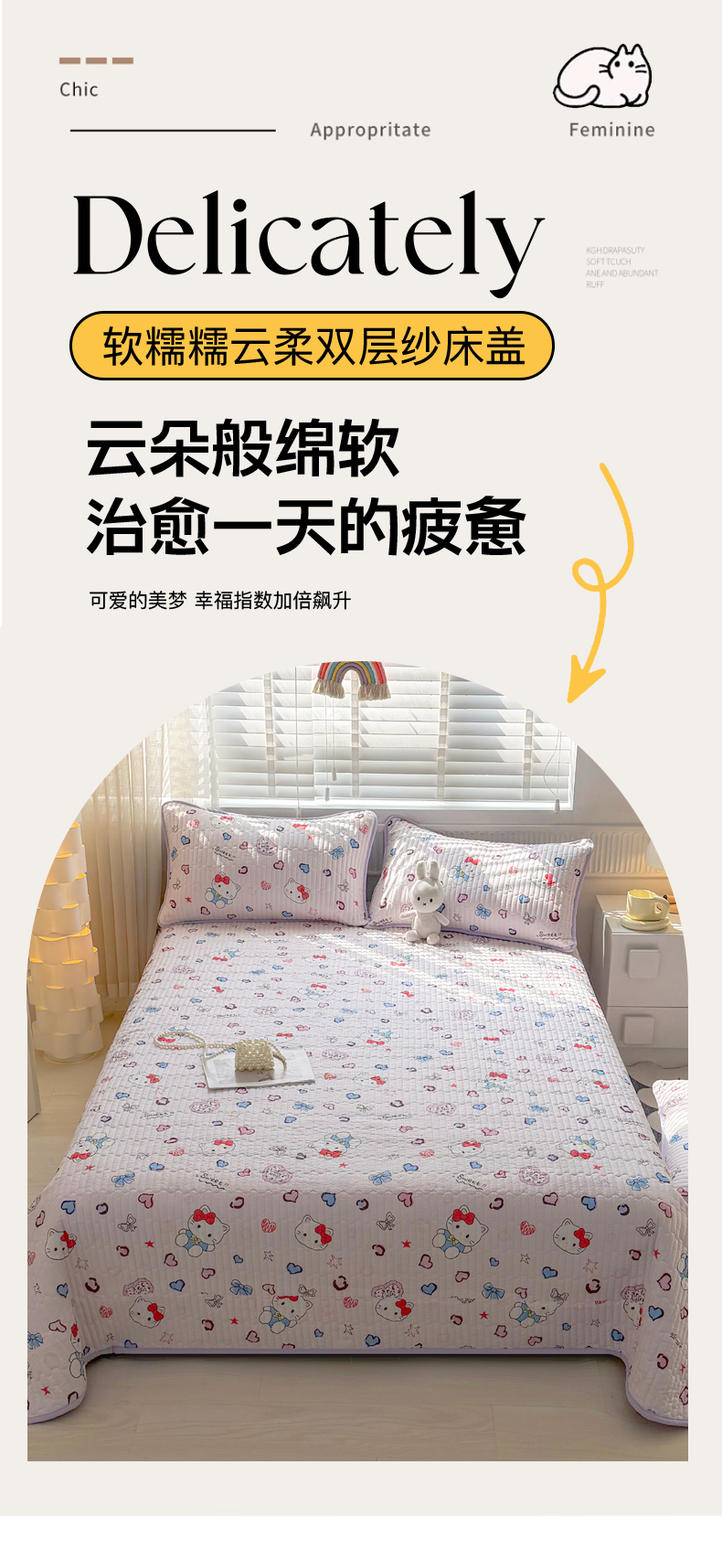 • 91家纺网 家纺一手货源 找家纺 悠米悠家 2026春夏新款木棉双层纱单床盖 床盖单件 甜心Kitty日记
