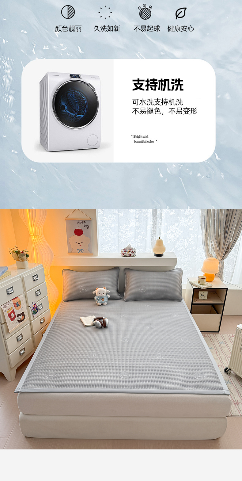 (总)欧邦 2026新款华夫格小熊系列凉感冰豆豆凉席款,小熊贵妃粉,小熊极致灰,小熊孔雀蓝,小熊浅卡其,小熊水绿