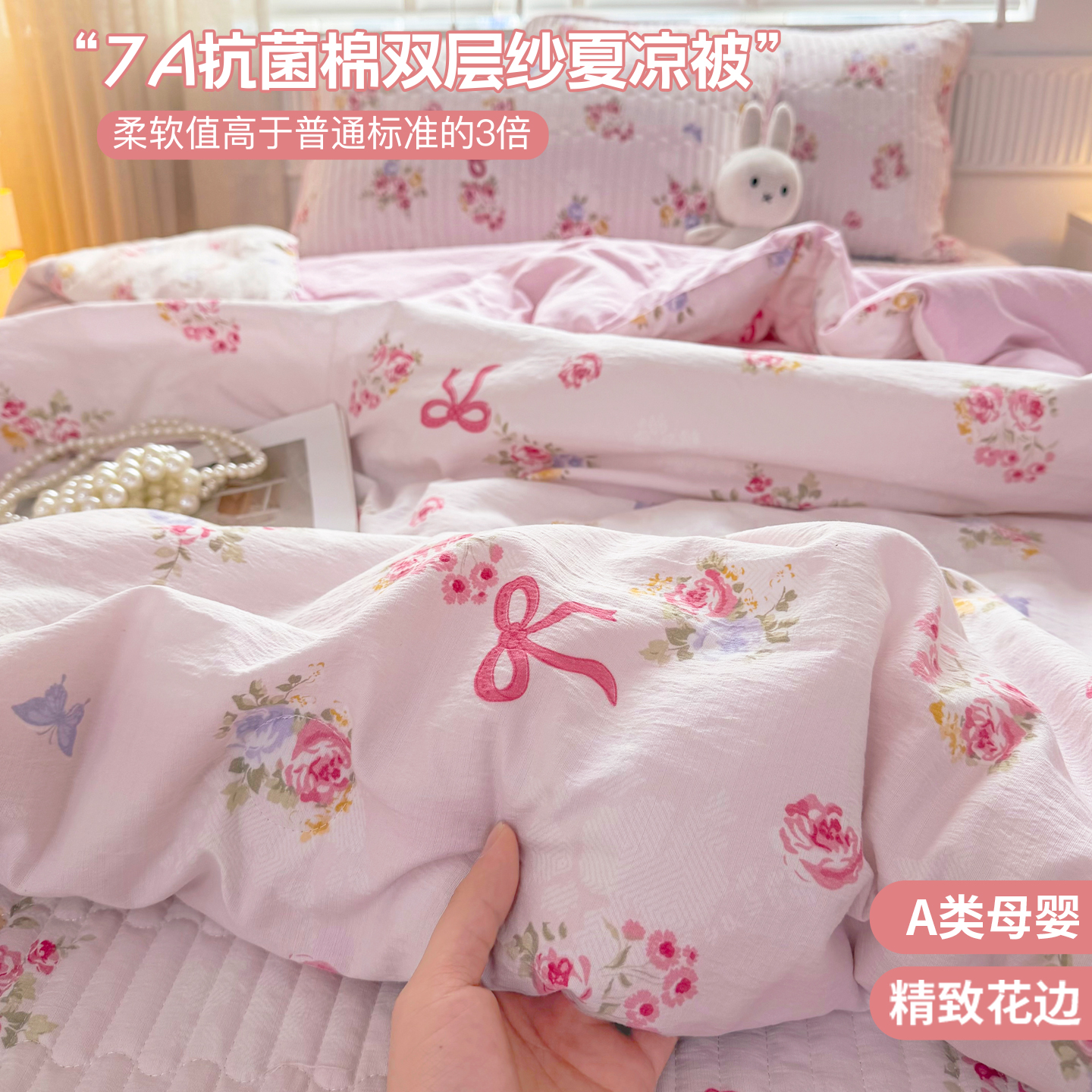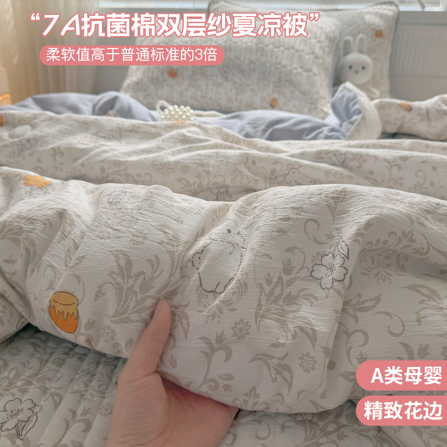 (总)悠米悠家 2026春夏新款木棉双层纱单夏被夏凉被空调被床盖四件套,Kitty·冬日甜梦,密语甜梦,松间花熊,青屿花园,赫本日记,格调蝶韵,雾岛花眠,花漾玫瑰,甜心Kitty日记,云樱格语,甜莓小熊,花漾萌宠,晨间花园,可可萌熊,萌趣派对,蜜熊絮语,南瓜田园记,奶咖小熊,趣味乐园,萌趣LABUBU,墨色花卉,星梦精灵仔,告白气球,海盐甜玫梦,温软蝶梦,云间小铁道,焦糖花境