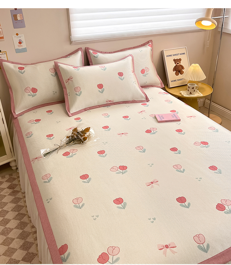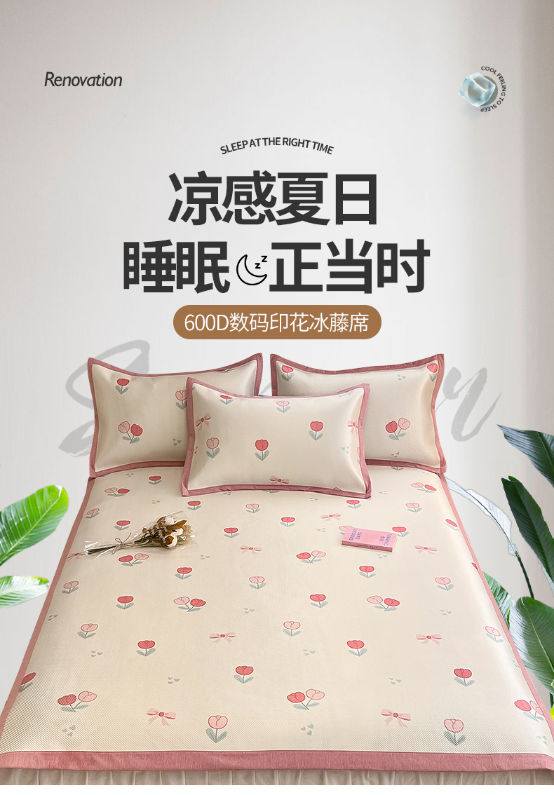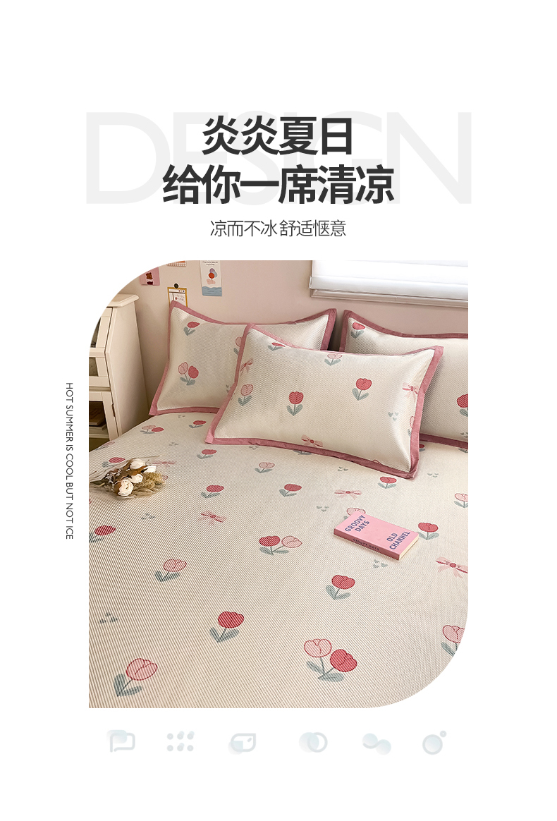 懒猫家纺 2026春夏新款600D数码印花冰藤凉席席子-床笠款 郁金香