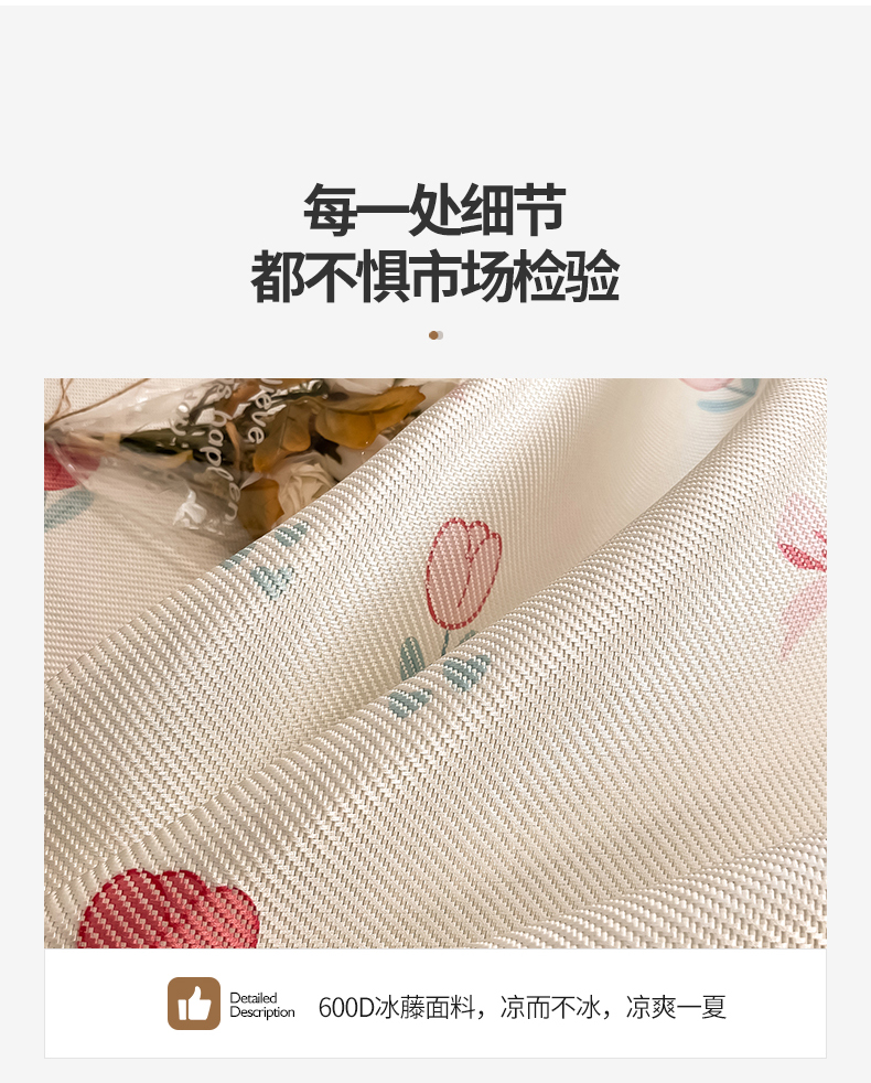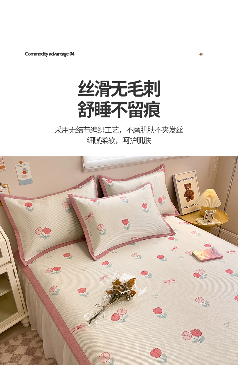 商品名称:懒猫家纺 2026春夏新款600D数码印花冰藤凉席席子-床笠款 郁金香
