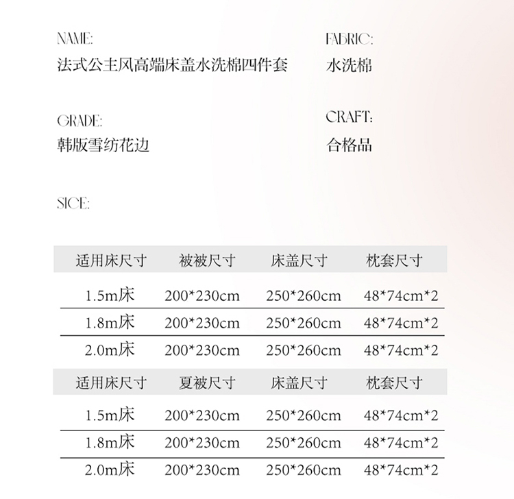 商品名称:苏米娜家纺SUMINA 2026韩版亲肤水洗棉公主风夏被床盖款-花涧绣梦