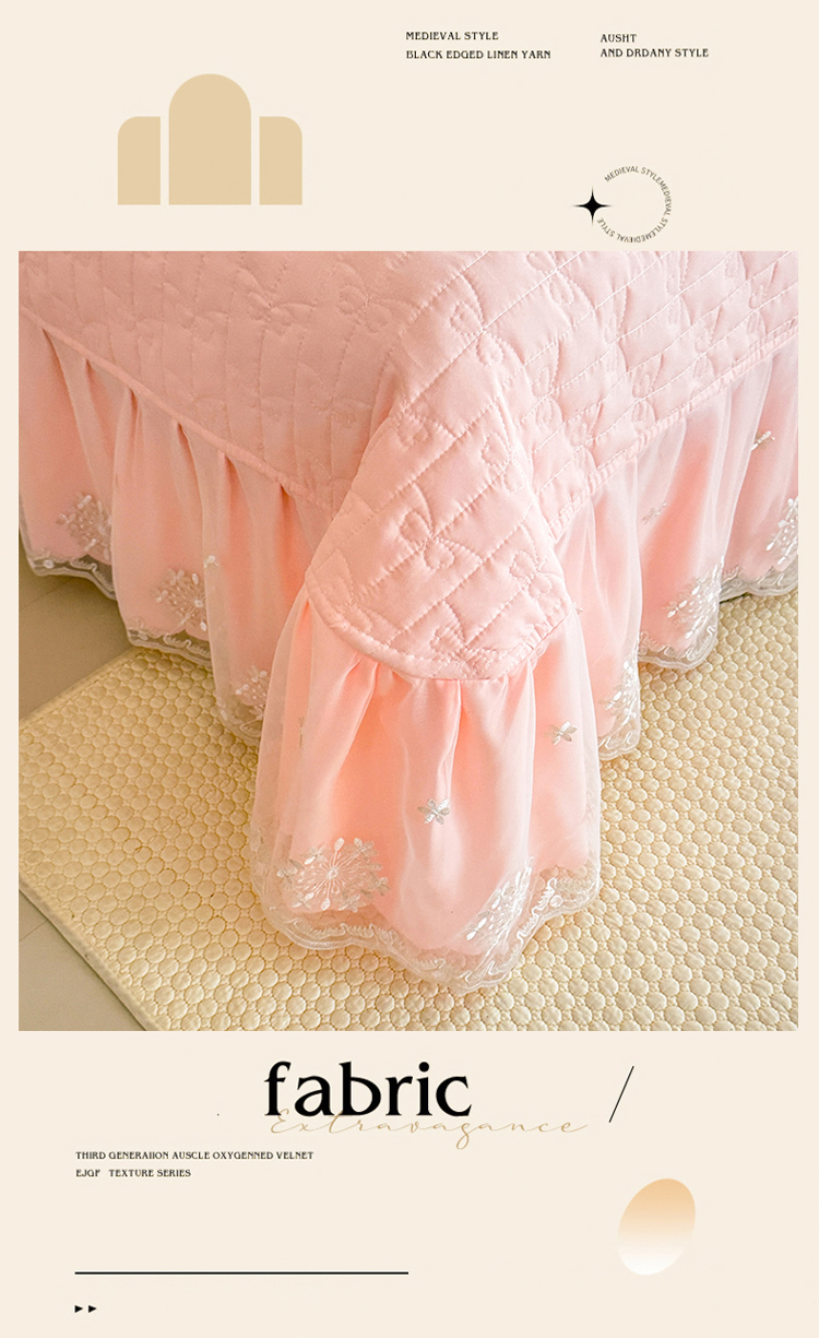 漫布云2026秋冬新款11斤230g全消光牛奶绒夹棉床盖款四件套纯色蕾丝花边刺绣床裙款床盖,蝶恋花-梦幻紫, 蝶恋花-嫩黄 ,蝶恋花-新芽绿, 蝶恋花-婴儿蓝, 蝶恋花-樱花粉