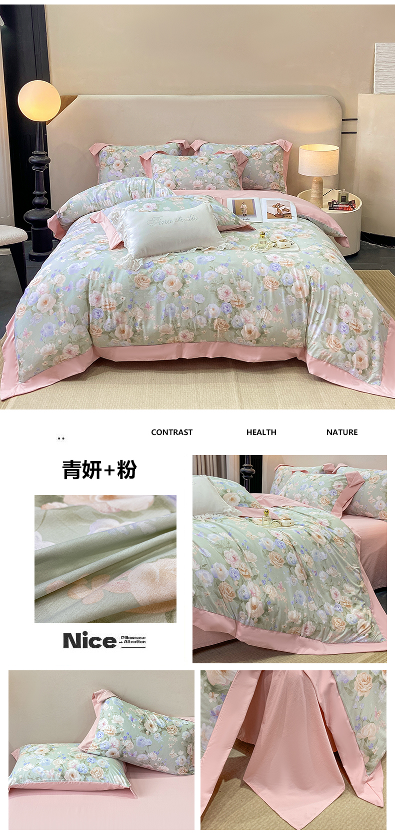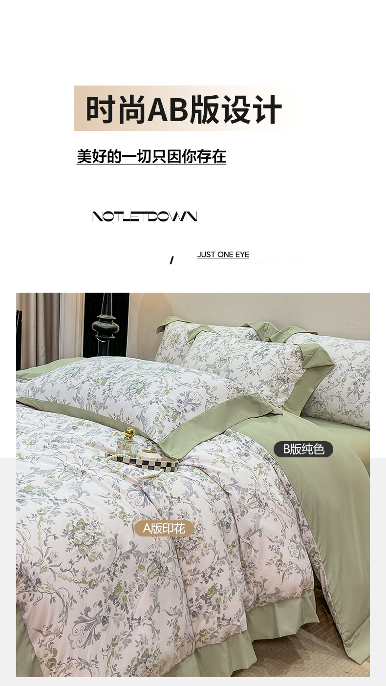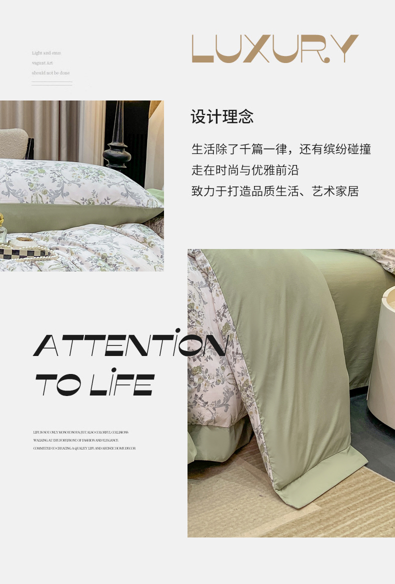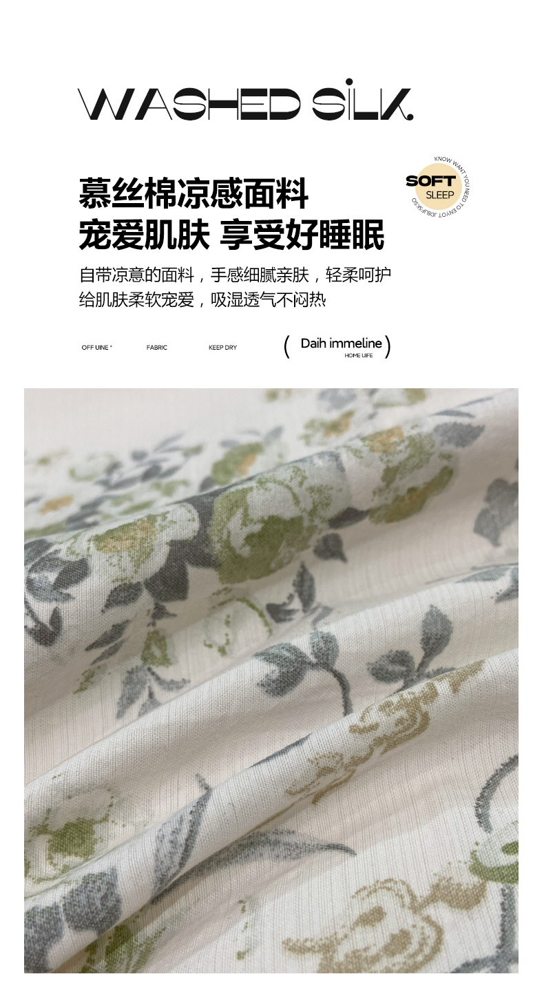 当前位置: 91家纺网 > 商品网购 > 床品套件 > 四件套 > 其它四件套 > 慕木家纺 2026新款A类印花拼角工艺慕斯棉四件套系列(抽空压缩可供跨境)提供买家秀 清漫+绿