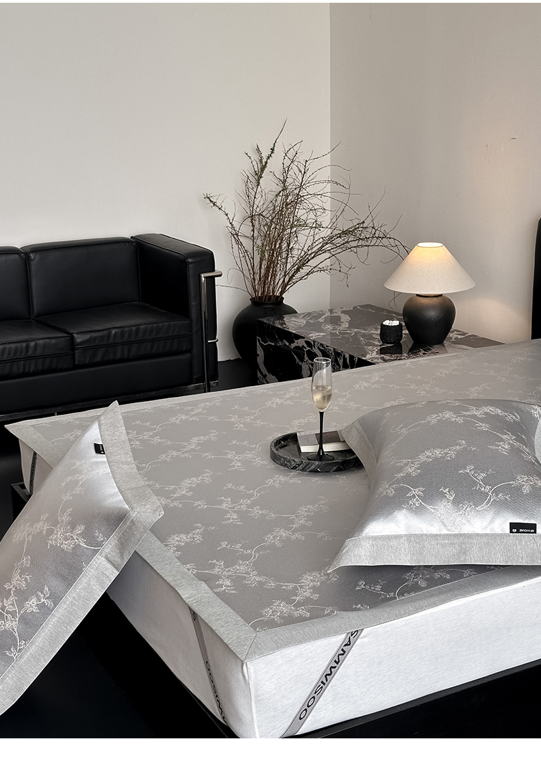 (总)三味舒屋 2026新款60s天丝丝韵提花系列四件套,丝韵白,丝韵浅金