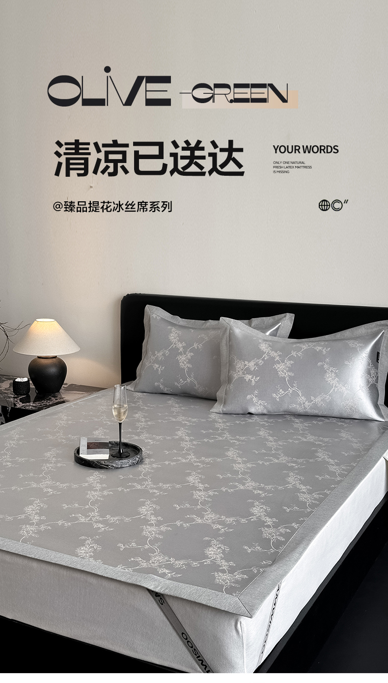 (总)三味舒屋 2026新款 凉感抗菌防螨印花冰丝养生席(新升级7A抗菌),花非花 床席,花非花 床笠,雾非雾 床席,雾非雾 床笠