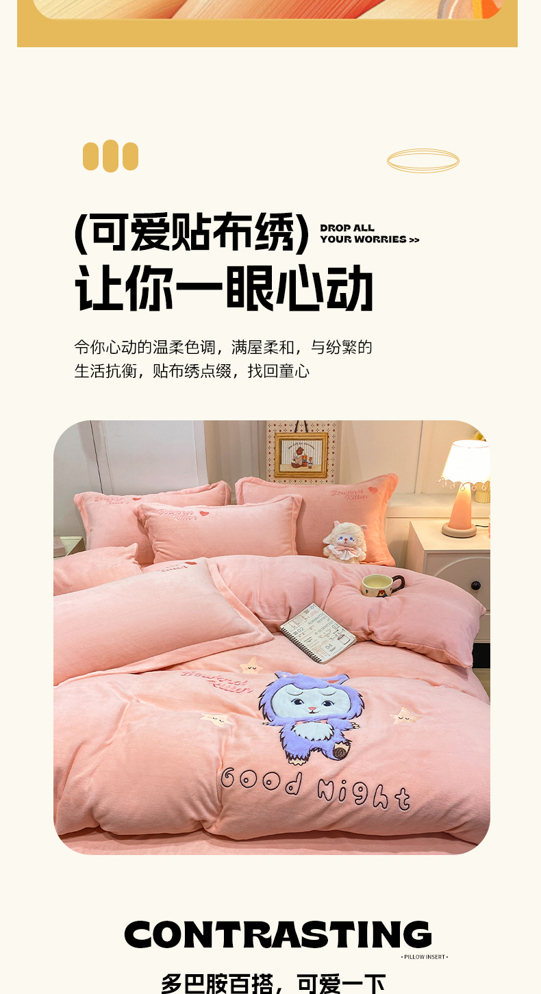 当前位置: 91家纺网 > 商品网购 > 床品套件 > 四件套 > 牛奶绒四件套 > 欧妮家纺 2025新款牛奶绒贴布绣四件套 小兔-粉