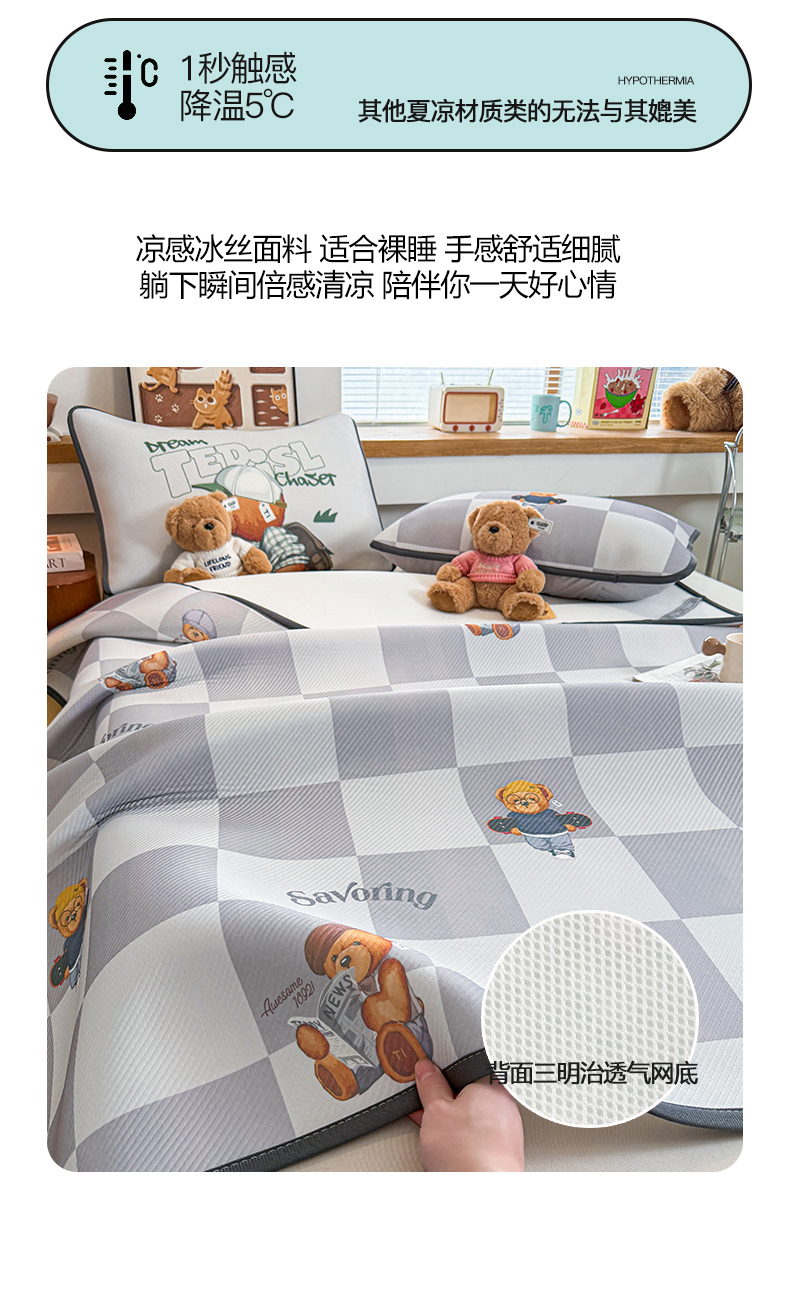 (总)源舍家纺 2025新款数码印花冰丝席-床席款,彩虹小熊,草莓兔,电报鼠,粉格熊,粉小迪,粉小熊,灰小奇,开心狗,拉小布,腊肠狗,蓝心小熊,恰恰狗,三棵树,水彩熊,太空兔,甜心点点,小巴拉,小粉结,小鲸鱼,小恐龙-绿,星空鹿,幸运鸭