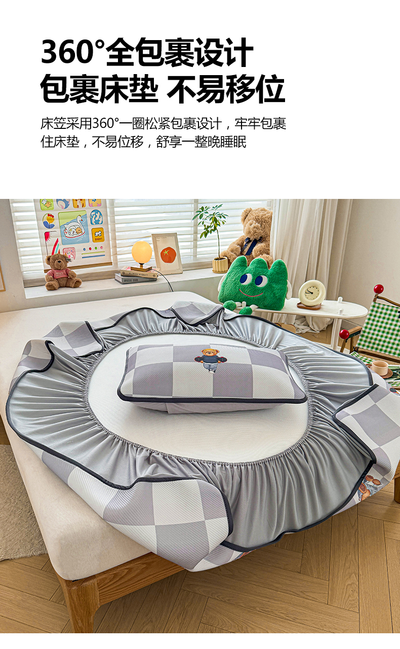 商品名称:源舍家纺 2026新款泰迪爱兰系列(正版授权)A类三明治复合印花斜纹豆豆软凉席床笠款 床笠款-泰迪灰格