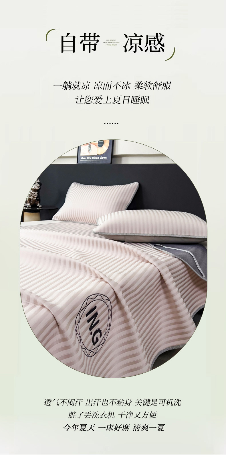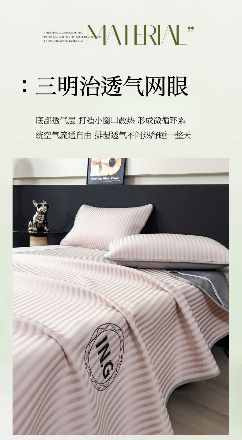 (总)印季家纺 2025新款轻奢简约凉感丝泡泡席-格调凉席,藏蓝,米黄,墨绿,浅粉,银灰