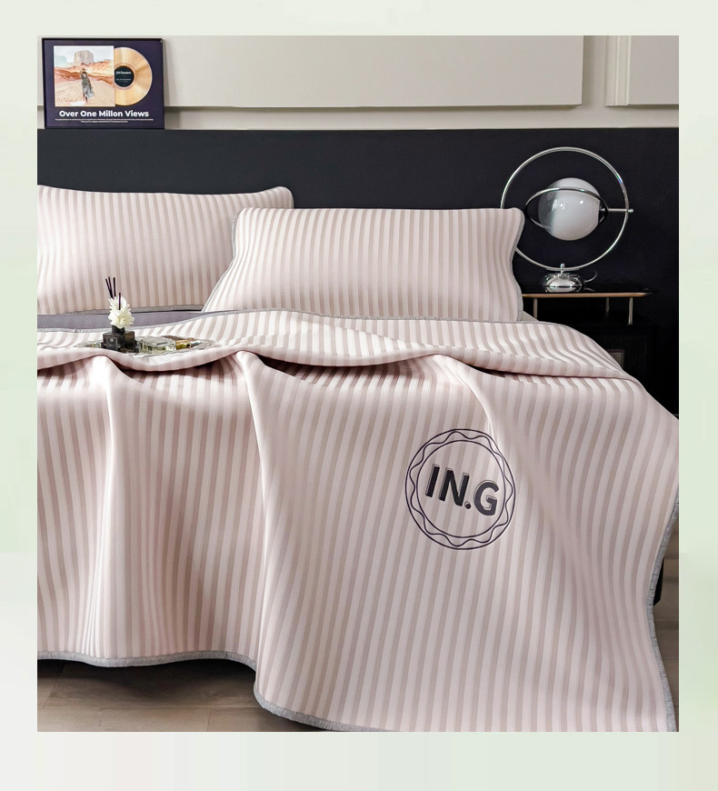 商品名称:印季家纺 2026新款刺绣冰感条纹全锦凉席席子三件套 冰莓粉-平铺款