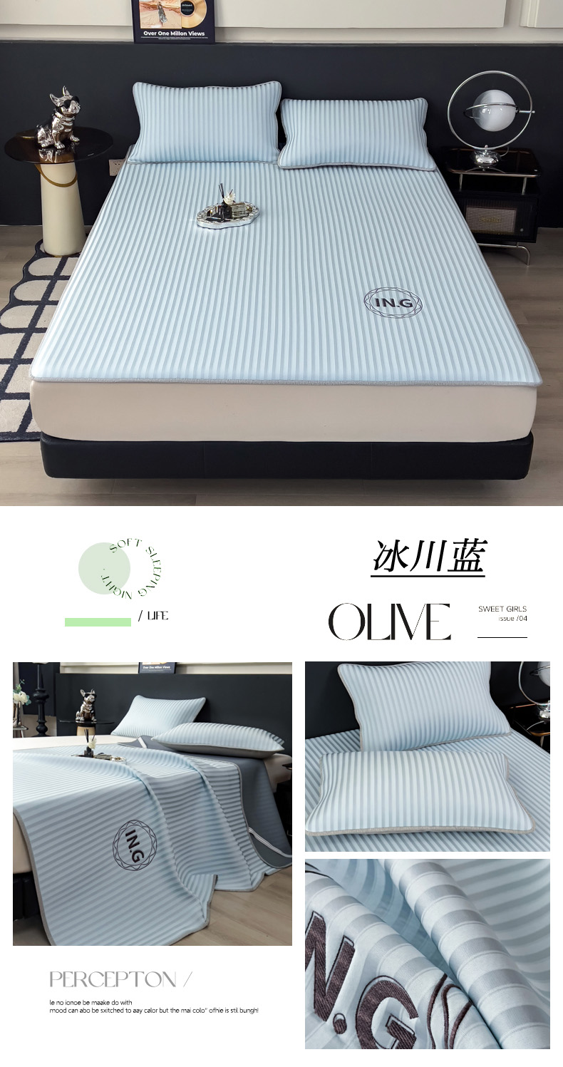 (总)印季家纺 2026新款刺绣冰感条纹全锦凉席席子三件套,冰川蓝-平铺款,冰莓粉-平铺款,冰烟灰-平铺款,冰川蓝-床笠款,冰莓粉-床笠款,冰烟灰-床笠款,组合图仅供展示不可下单