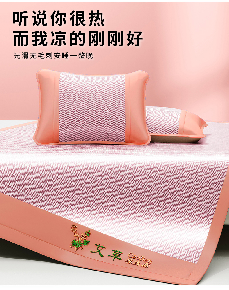 • 91家纺网 家纺一手货源 找家纺 女子家纺 2026新款A类艾草养生席席子凉席 樱花粉-床席