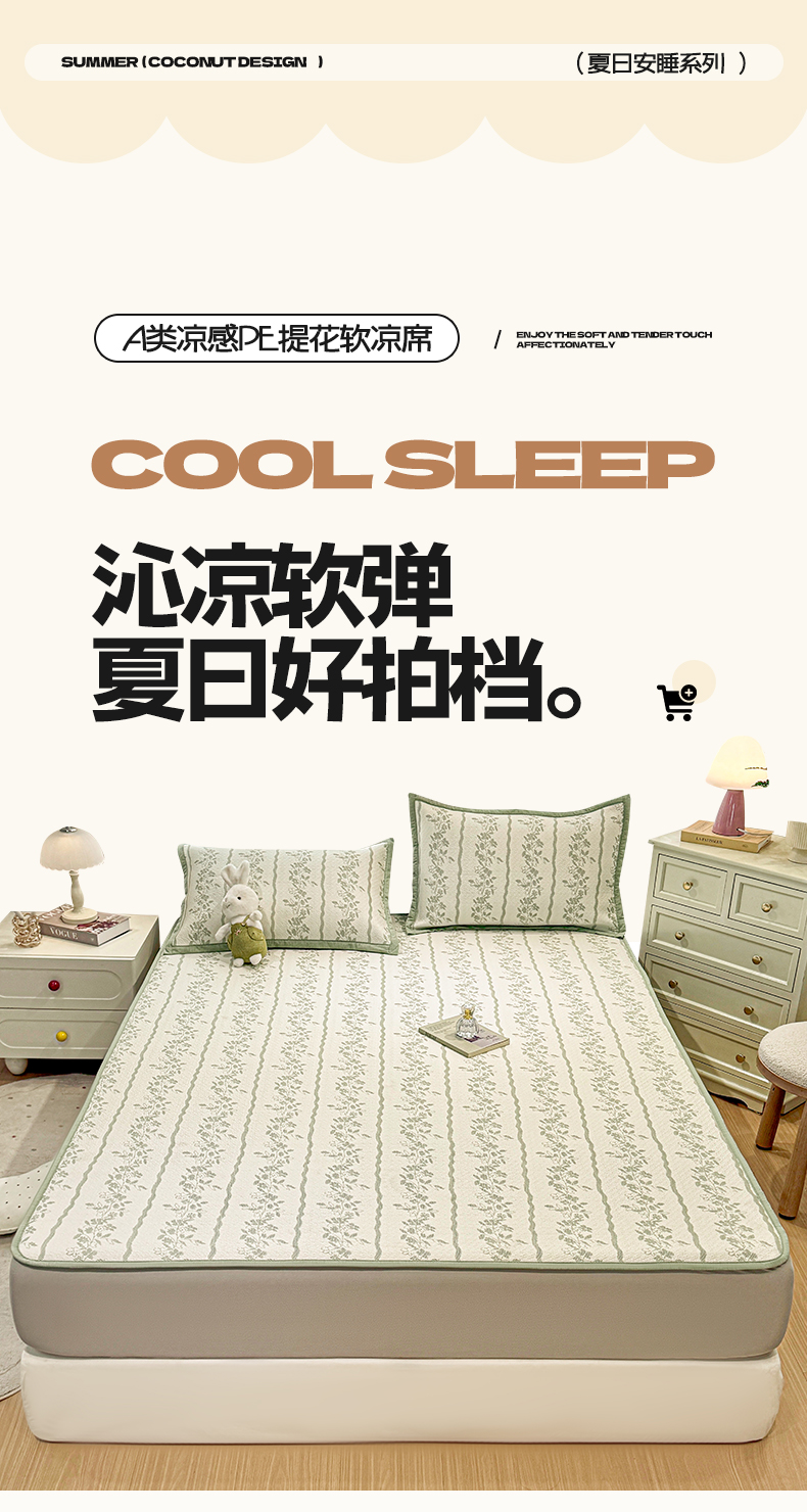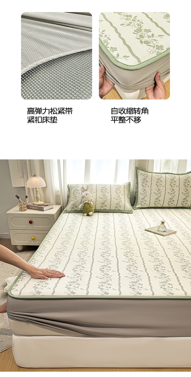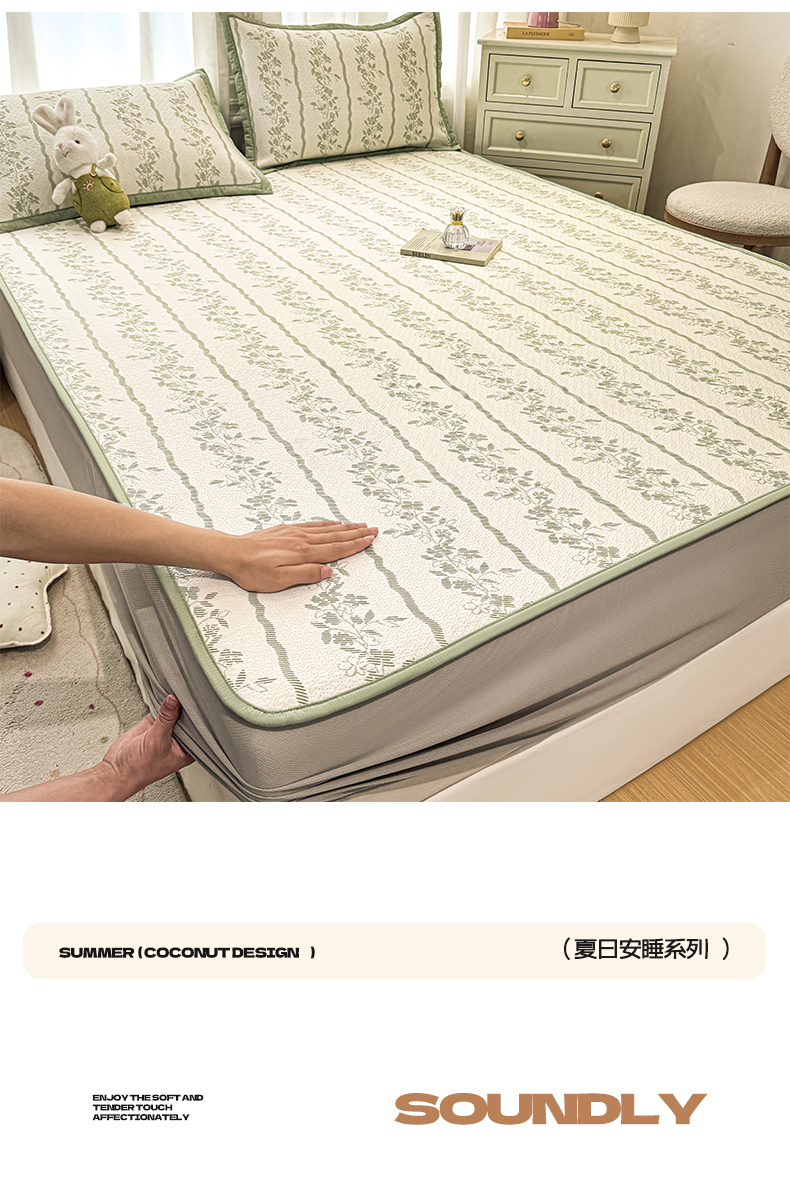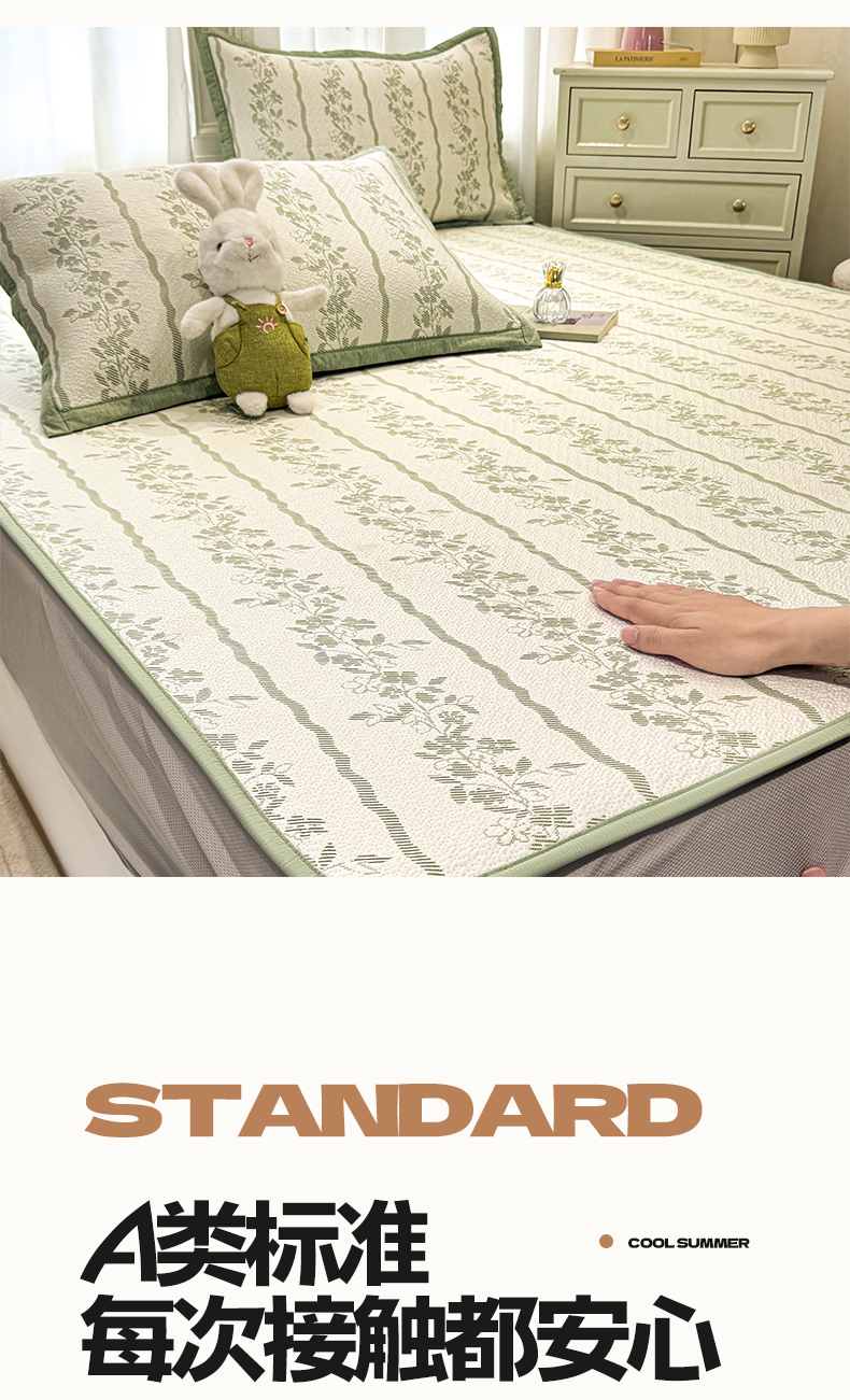 帅露家纺 2026新款A类PE中分子提花软凉席席子 床笠款-浪漫花园绿