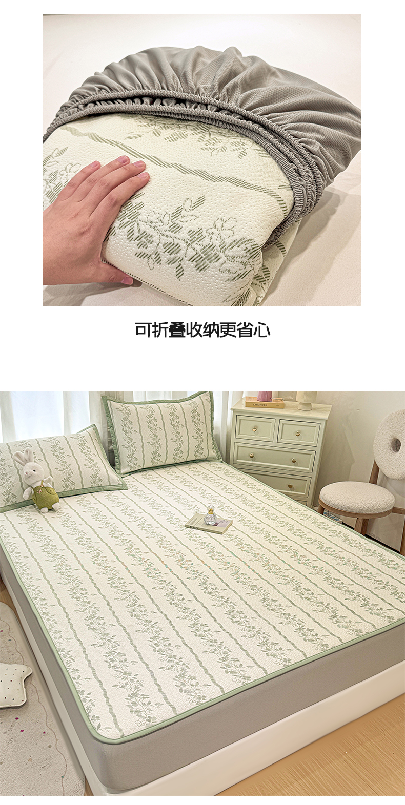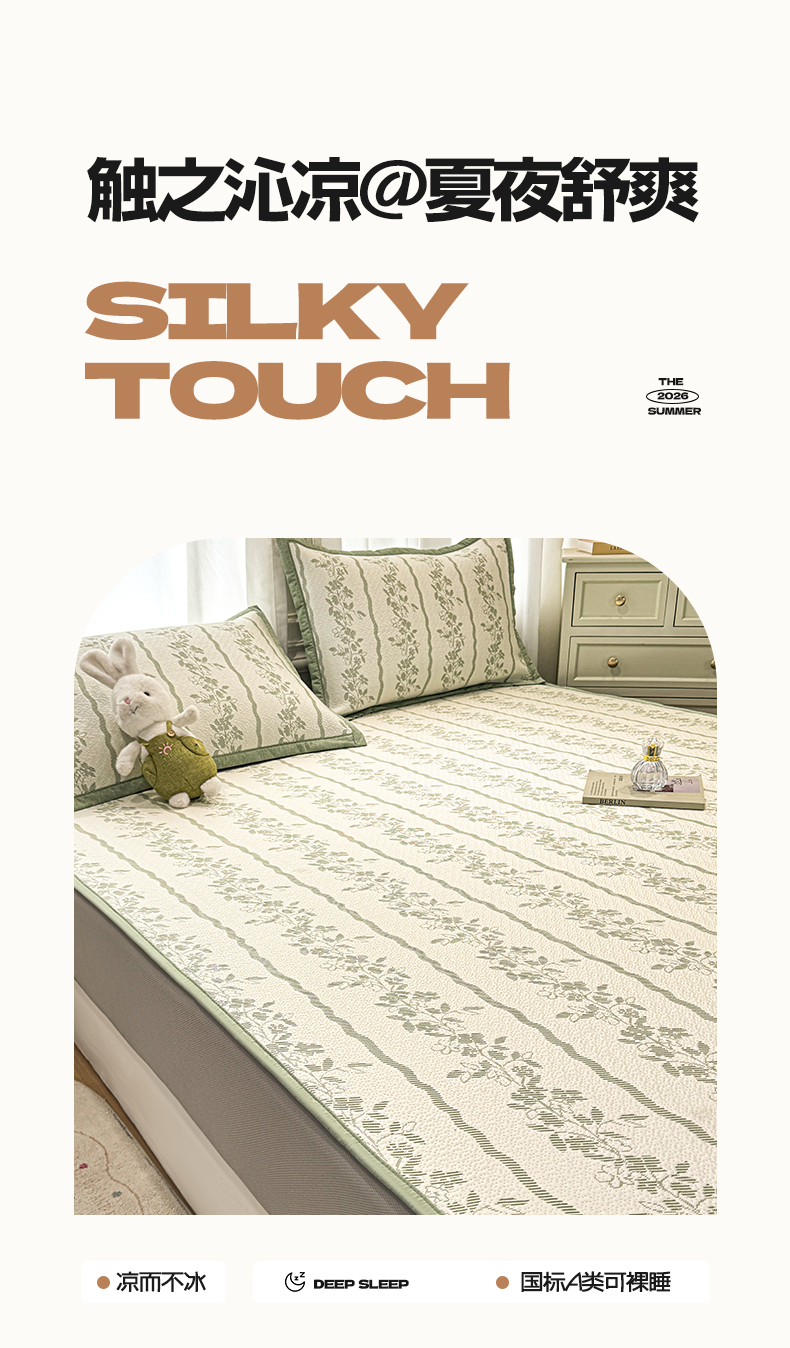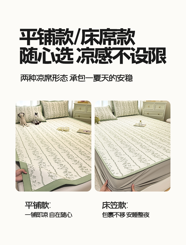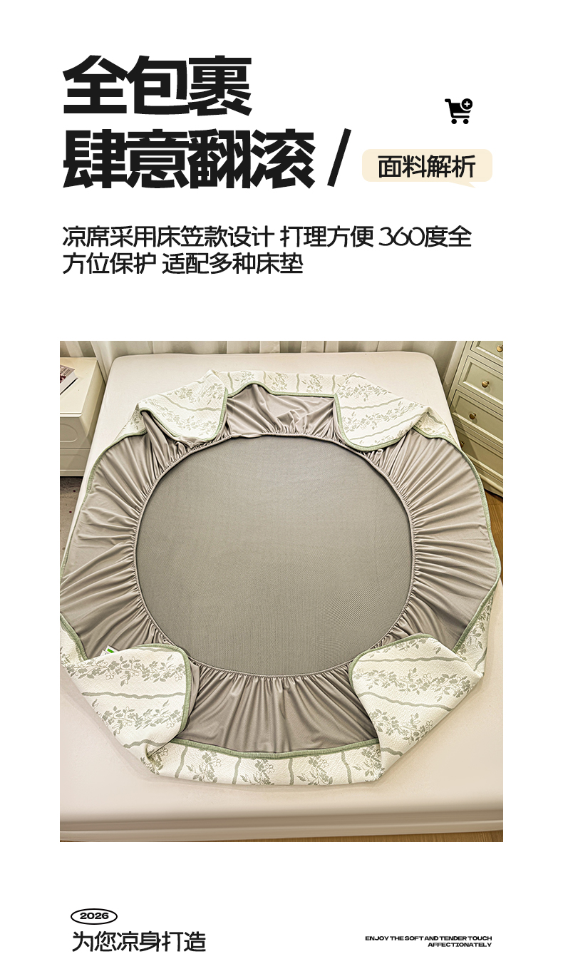 帅露家纺 2026新款A类PE中分子提花软凉席席子 床笠款-浪漫花园绿