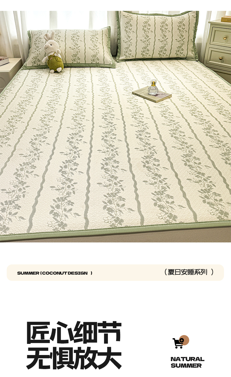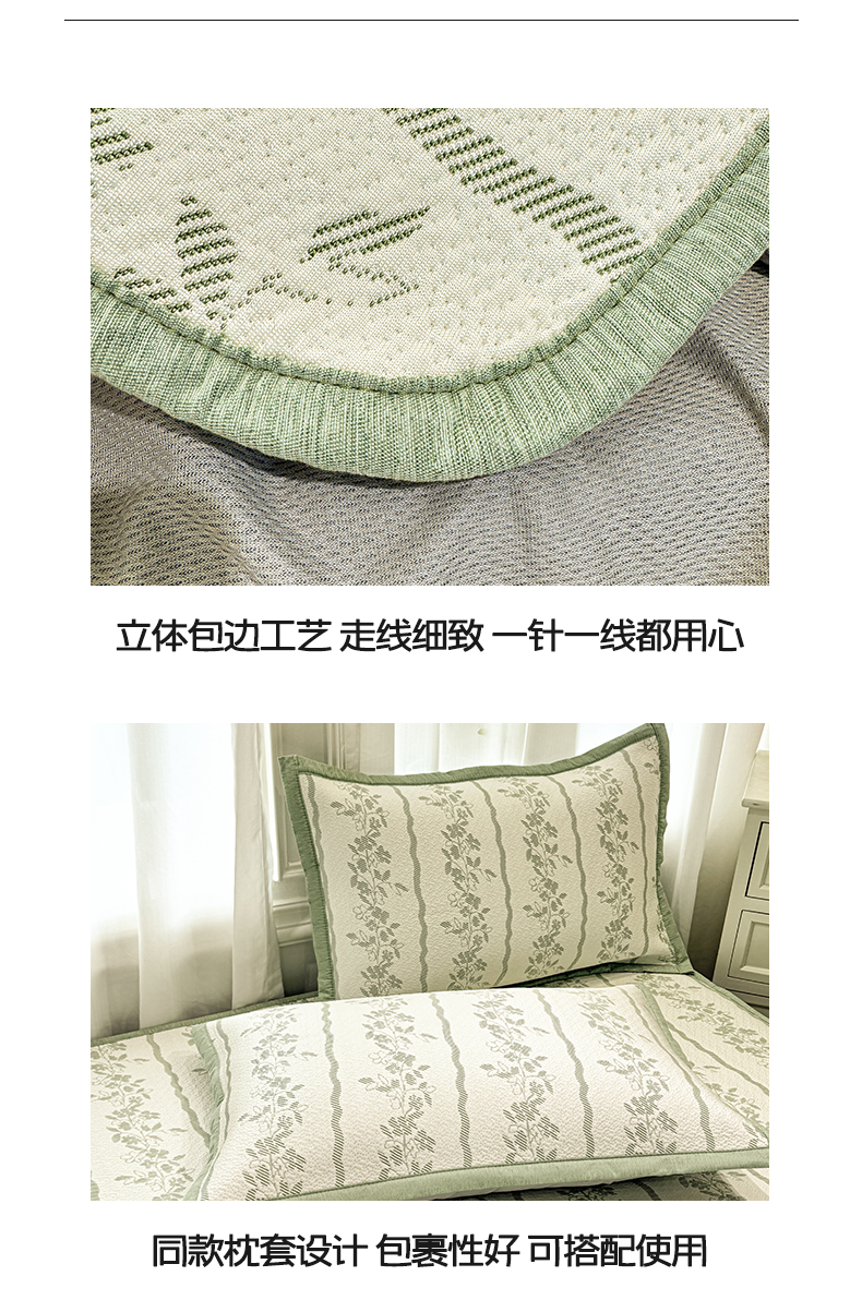 商品名称:帅露家纺 2026新款A类PE中分子提花软凉席席子 床笠款-浪漫花园绿
