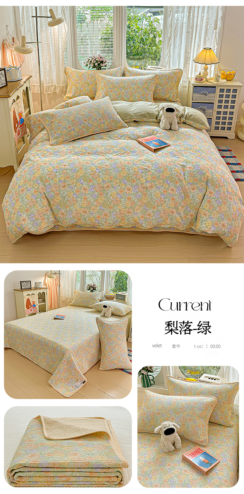 当前位置: 91家纺网 > 商品网购 > 床品套件 > 四件套 > 全棉普通四件套 > 文黛家居 2026新款全棉双层纱床盖四件套 梨落-绿