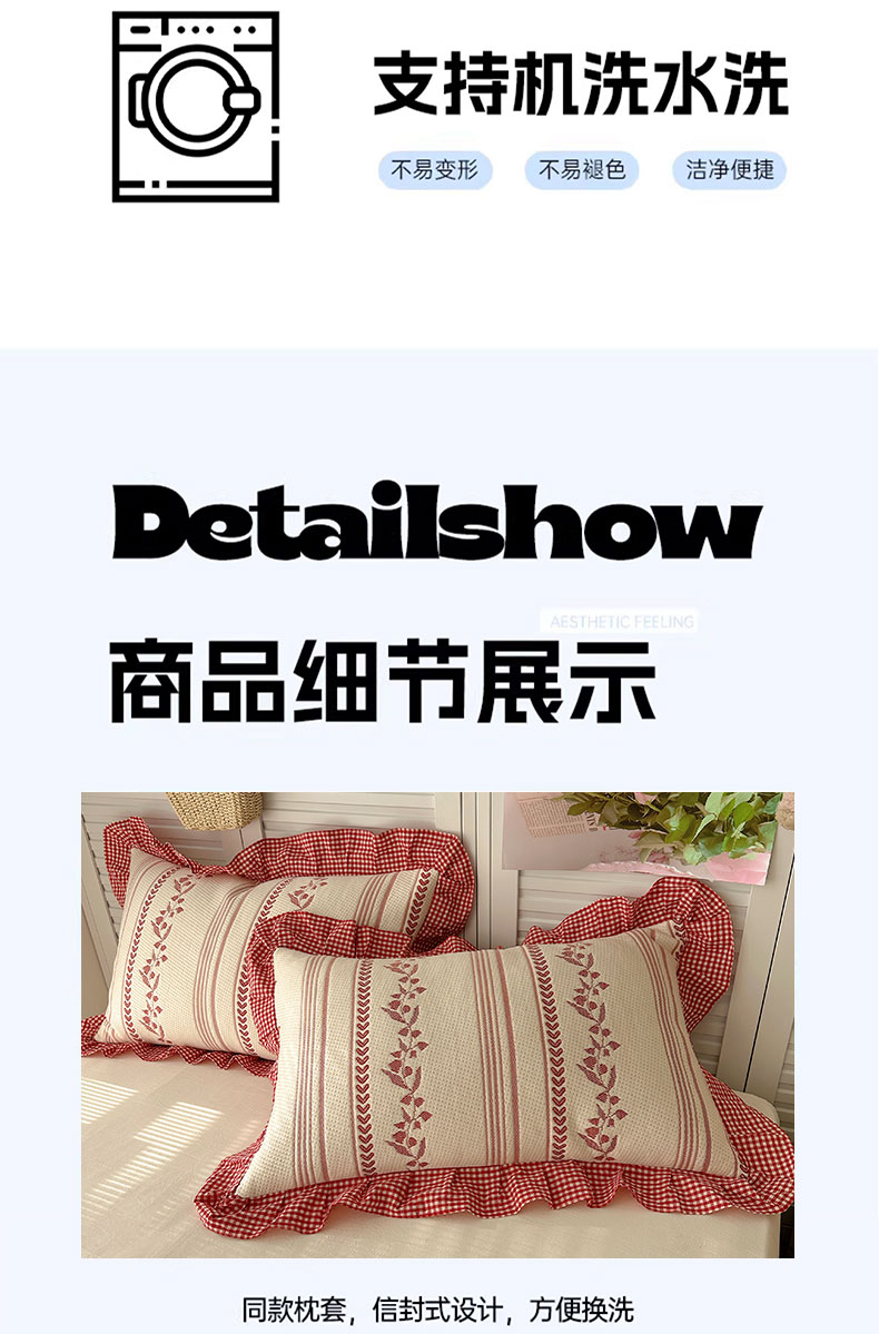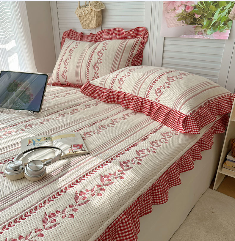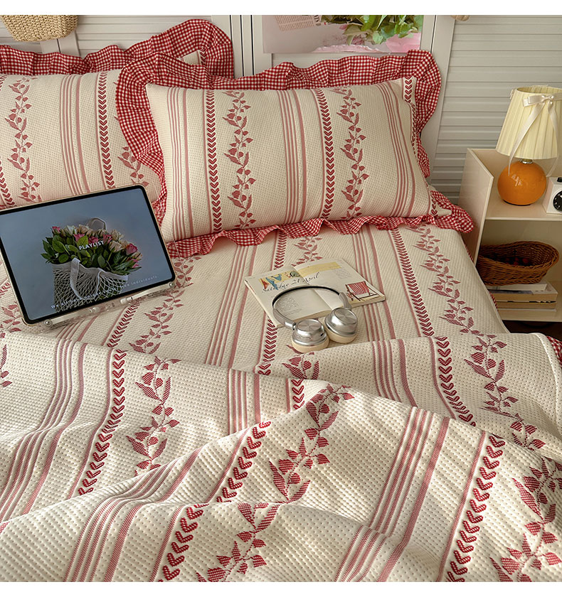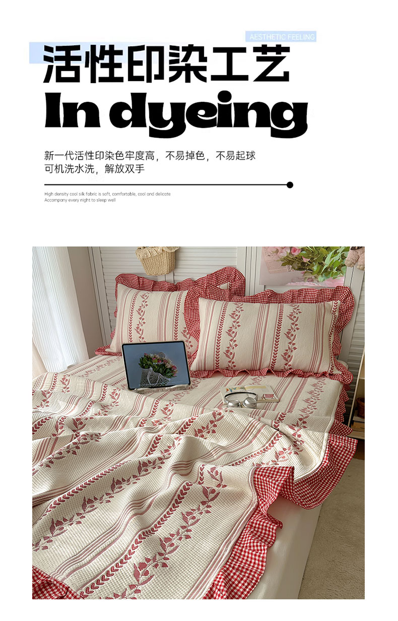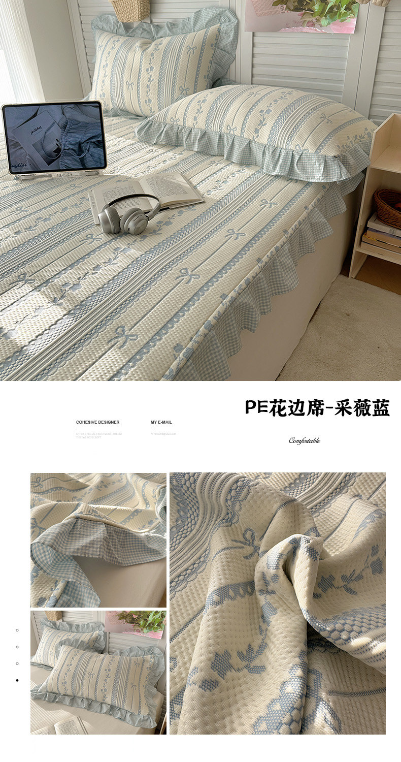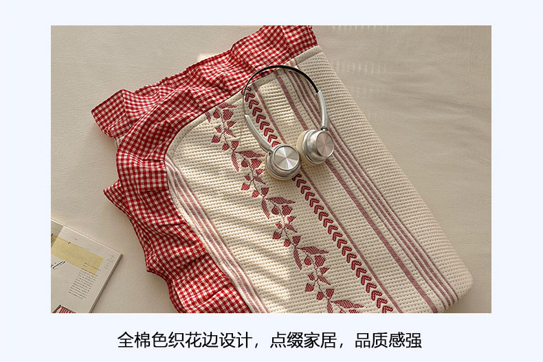 当前位置: 91家纺网 > 商品网购 > 床上用品 > 凉席 > 其他凉席 > 桃子家居 2026新款A类韩版全棉色织花边工艺提花PE凉感凉席席子凉席三件套系列 PE花边席-花西子红
