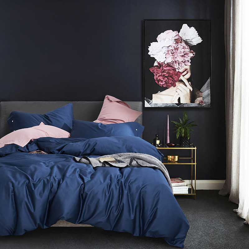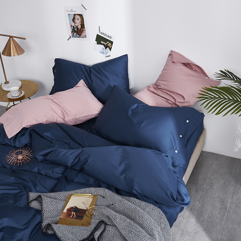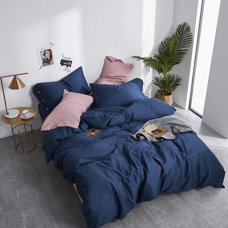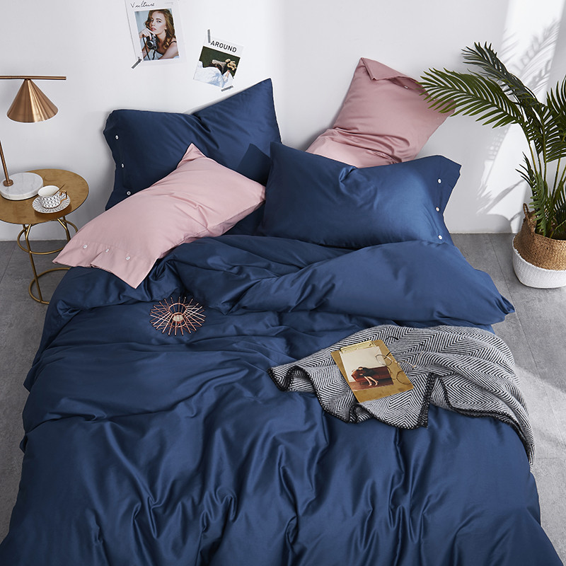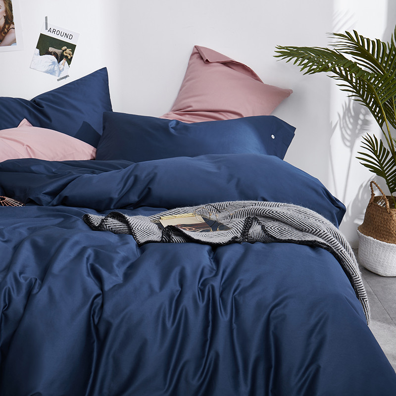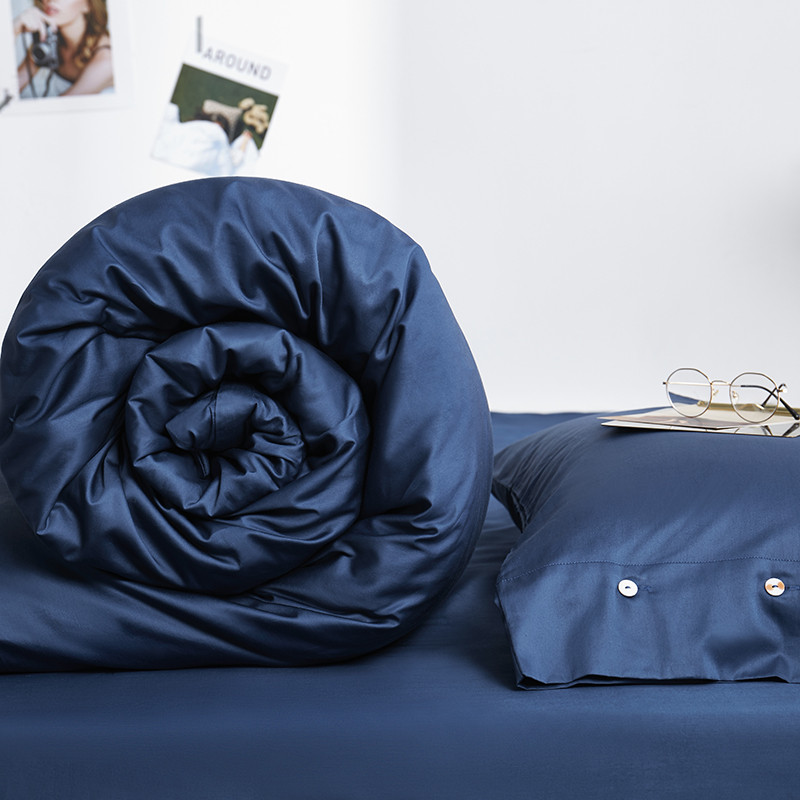 优然居家纺 60支长绒棉纯色四件套藏青