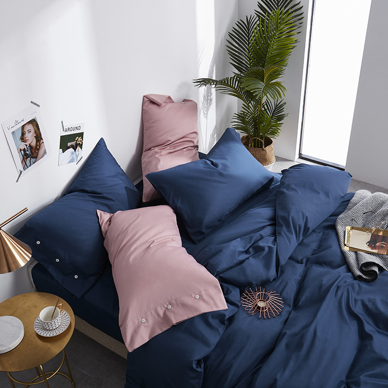 商品名称:优然居家纺 60支长绒棉纯色四件套藏青