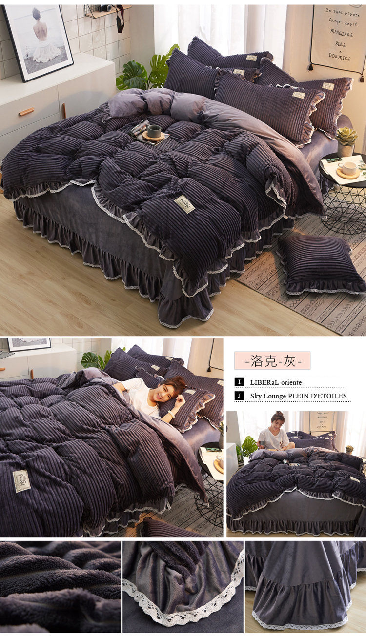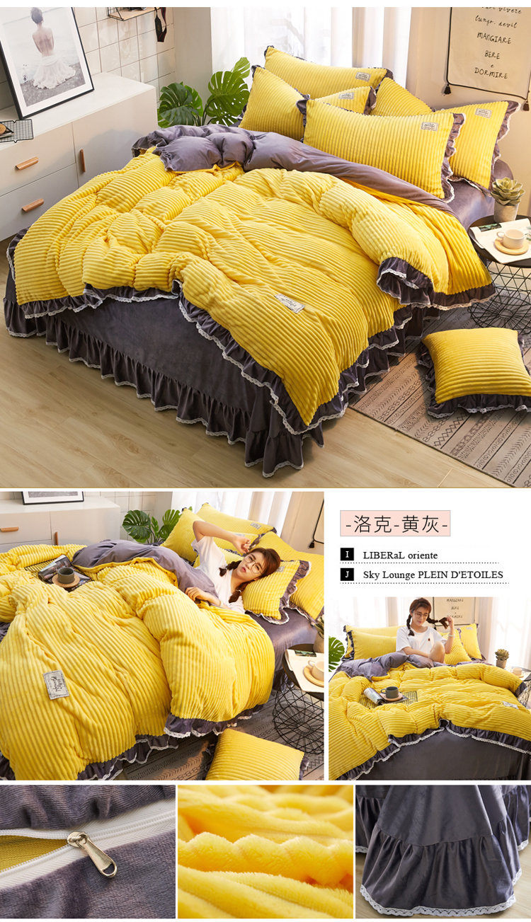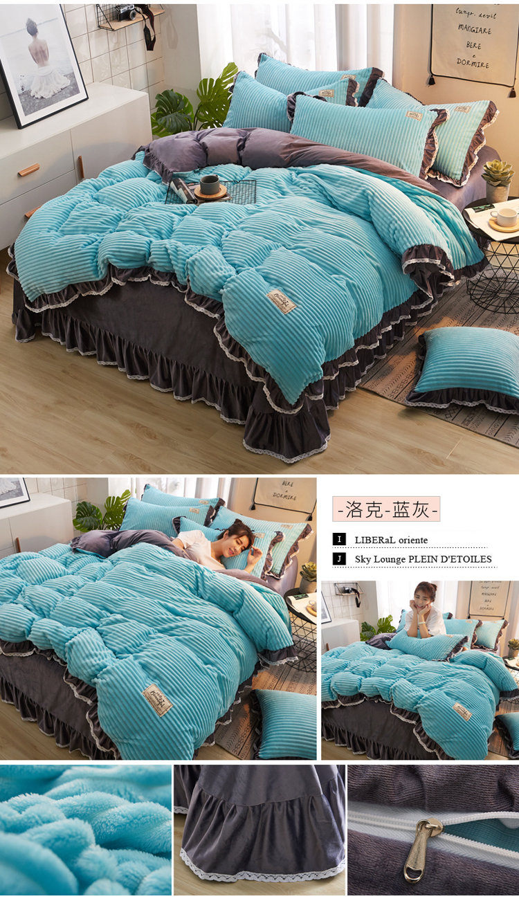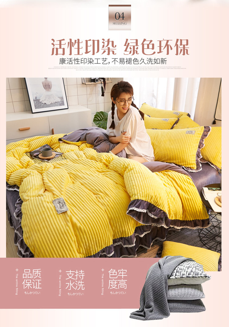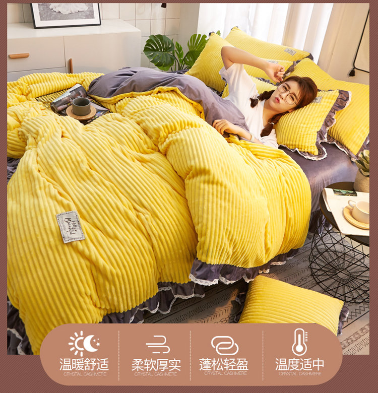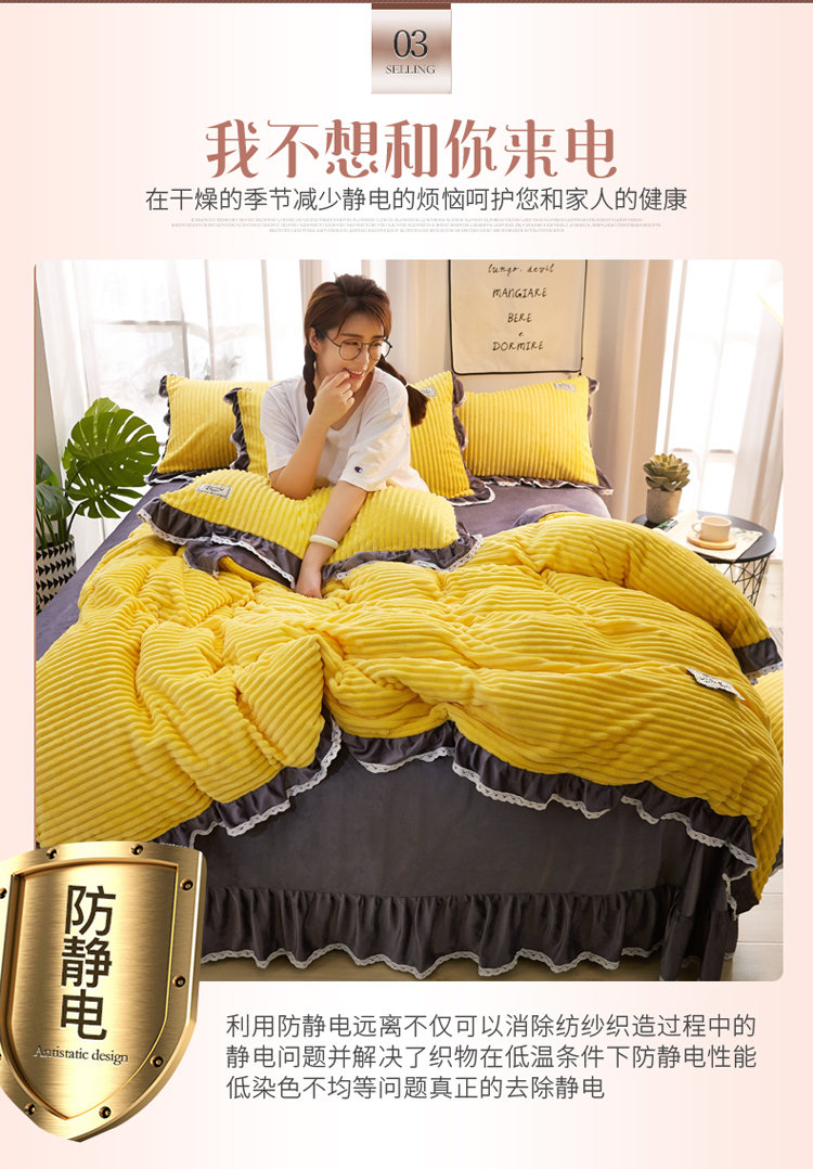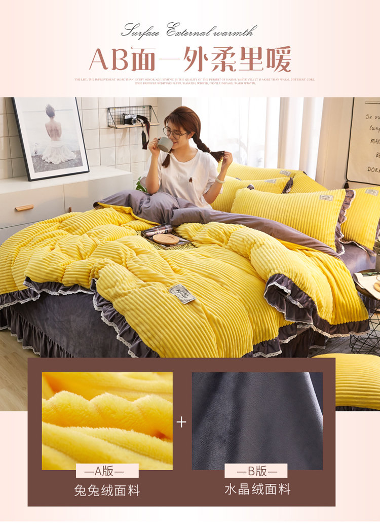 (总)金阳光2019新款兔兔绒韩版保暖法莱绒水晶绒四件套