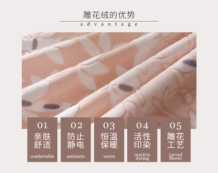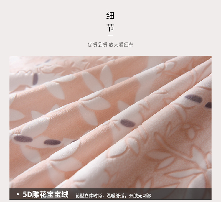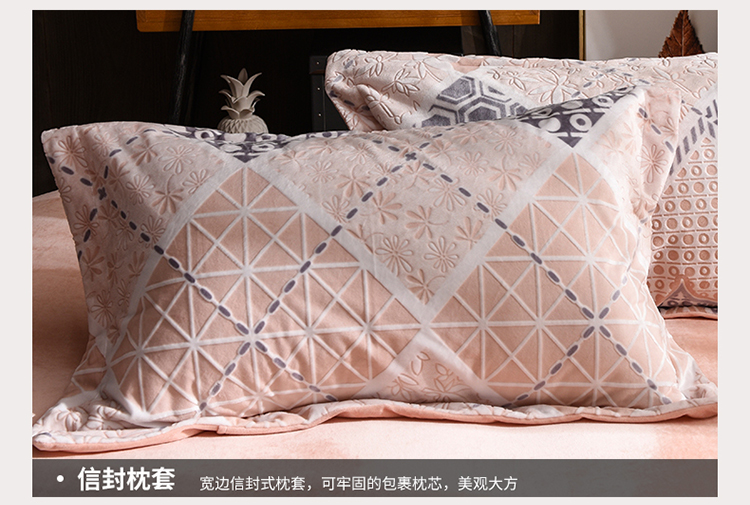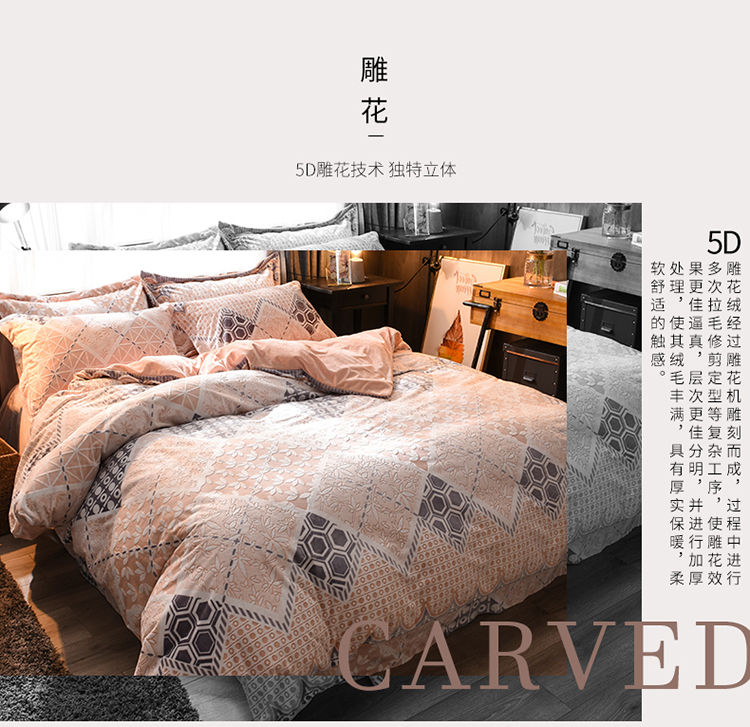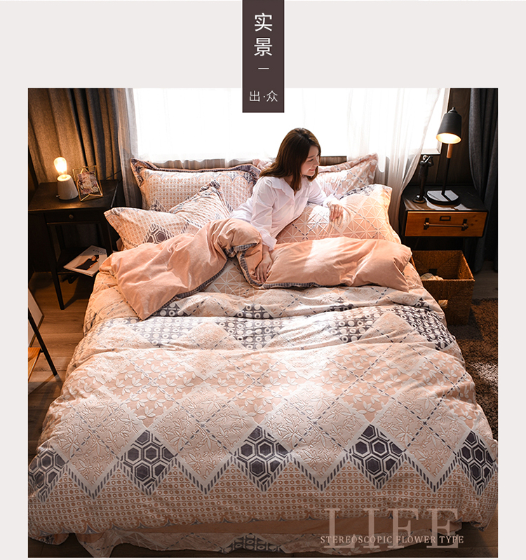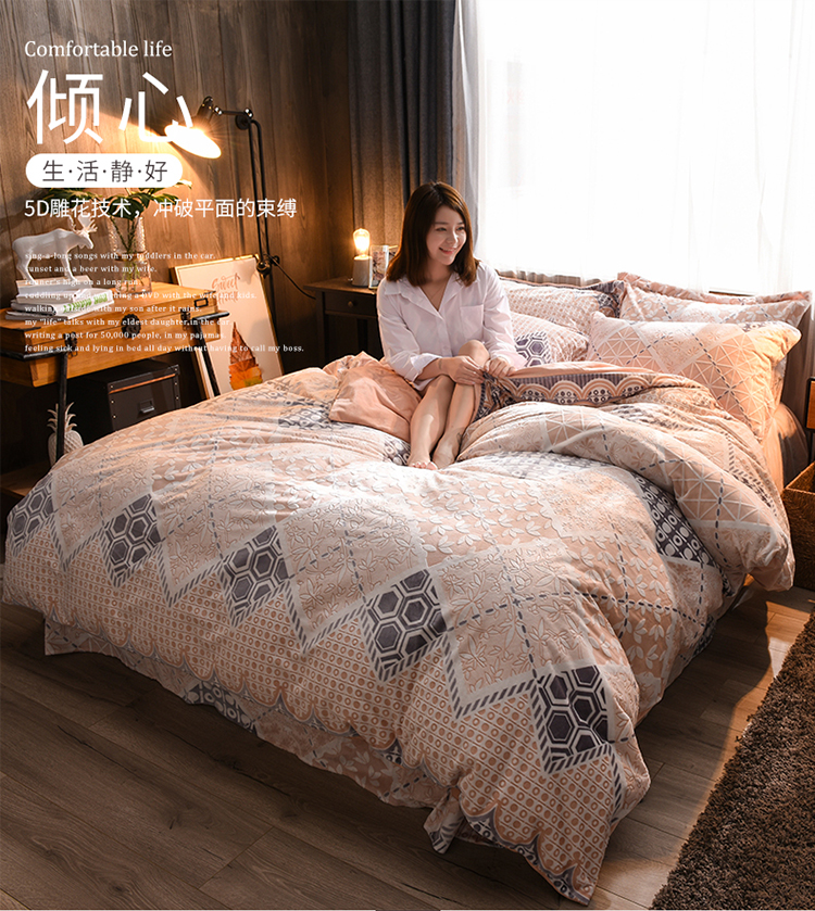 芃成家纺 5D雕花绒四件套 柏拉随机花边