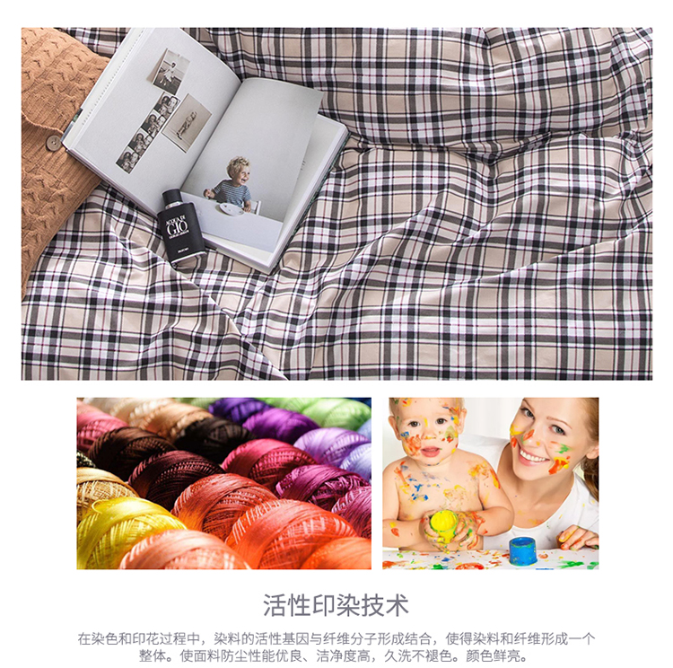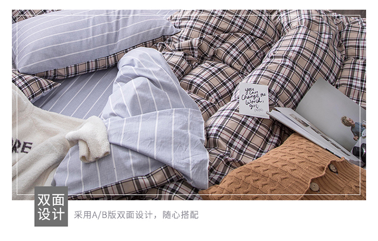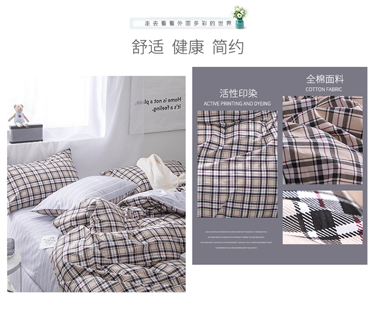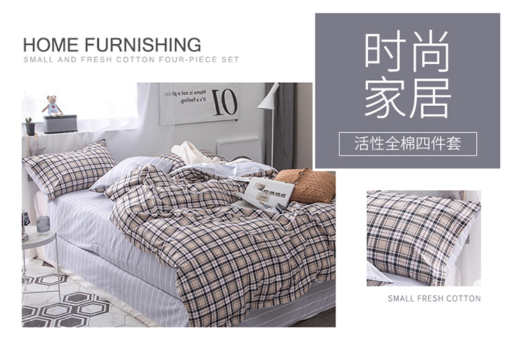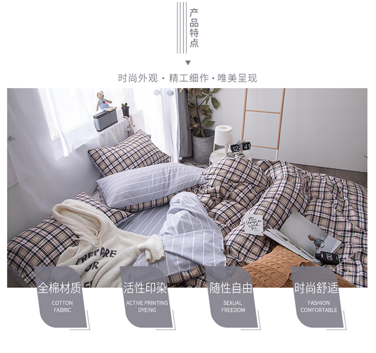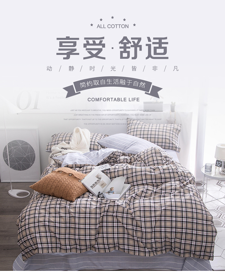 芃成家纺 2020全棉133X72圆网四件套 格子先生