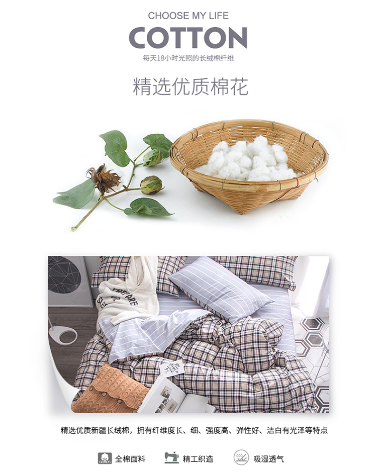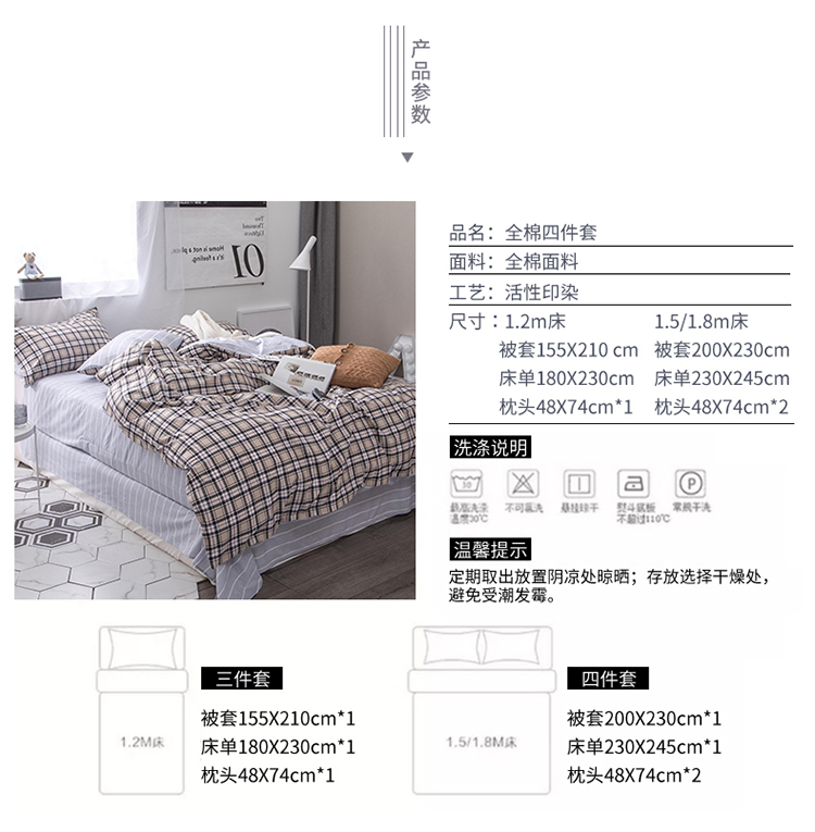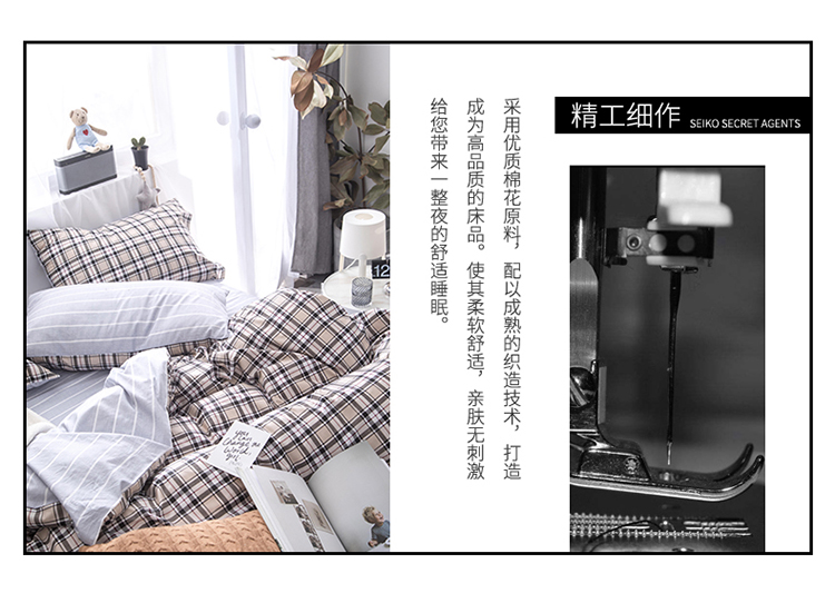 商品名称:芃成家纺 2020全棉133X72圆网四件套 格子先生